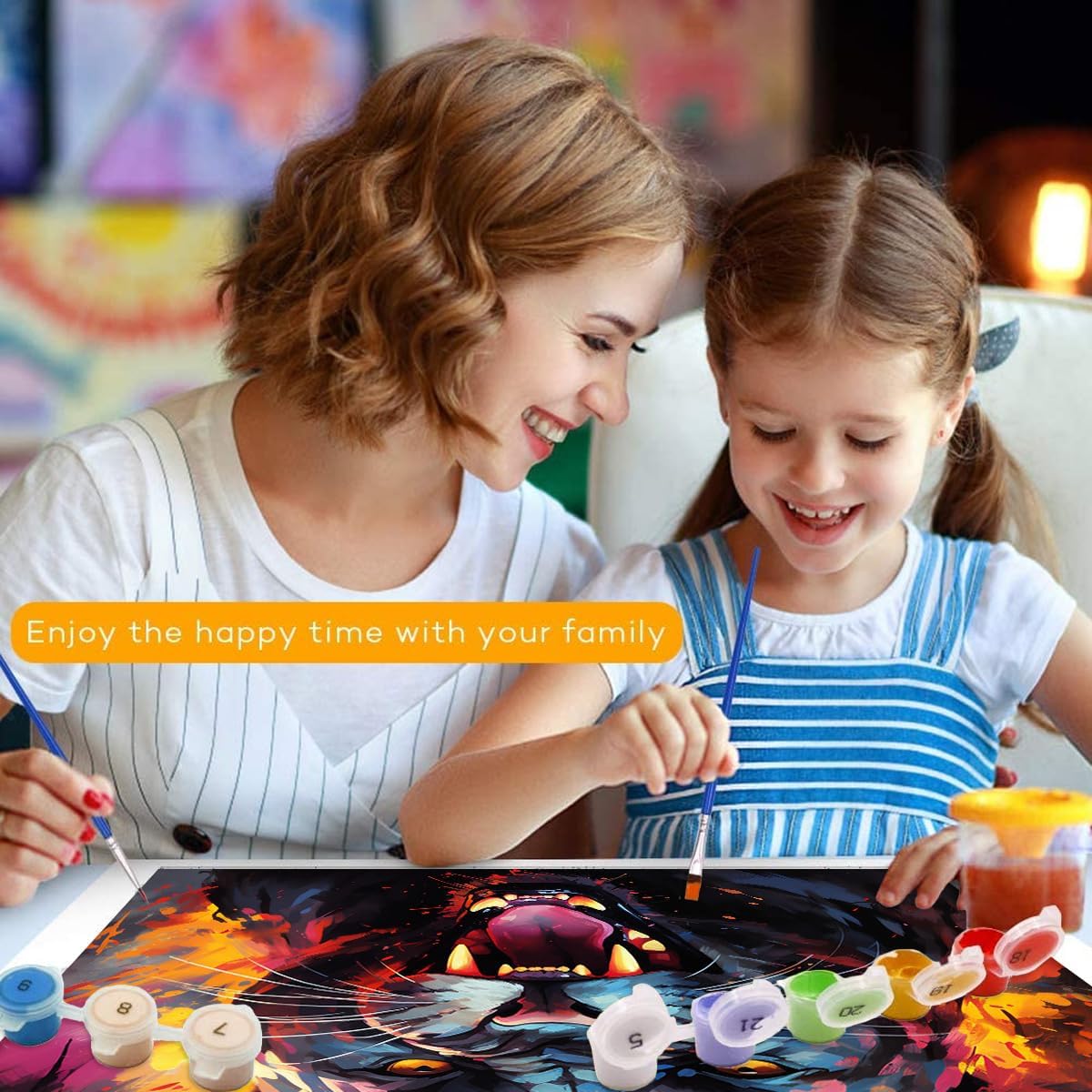 Allevia la pressione – Ti senti spesso stanco o stressato? Questo prodotto ti aiuterà a rilassarti e ad alleviare lo stress nel tempo libero. Goditi la creazione di una splendida opera d'arte. Facile da dipingere: dipingere con i numeri è adatto per principianti di tutti i livelli di abilità, bambini, studenti. Seguire le istruzioni, dipingere in base al numero di colore e finire l'immagine uno dopo l'altro. Giocattolo educativo: può aiutare le persone a migliorare il rapporto tra genitori e figli, amici e conoscenti, marito e moglie quando dipingi l'immagine con loro, in modo da poter divertirsi di più insieme. Multiuso: questa pittura a olio fai da te può essere un'ottima decorazione per la tua casa, cucina, hotel e ristorante, ed è il miglior regalo per genitori, amici, amanti, bambini per compleanni, matrimoni, Natale e feste. Contenuto della confezione: il kit per dipingere con i numeri include 1 tela artistica testurizzata prestampata (con cornice), 1 set di colori acrilici, 1 set di pennelli (inclusi 3 pezzi), 2 ganci, 1 set di cavalletti in legno, fornito in una squisita confezione regalo.