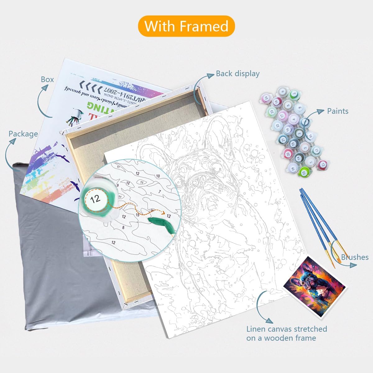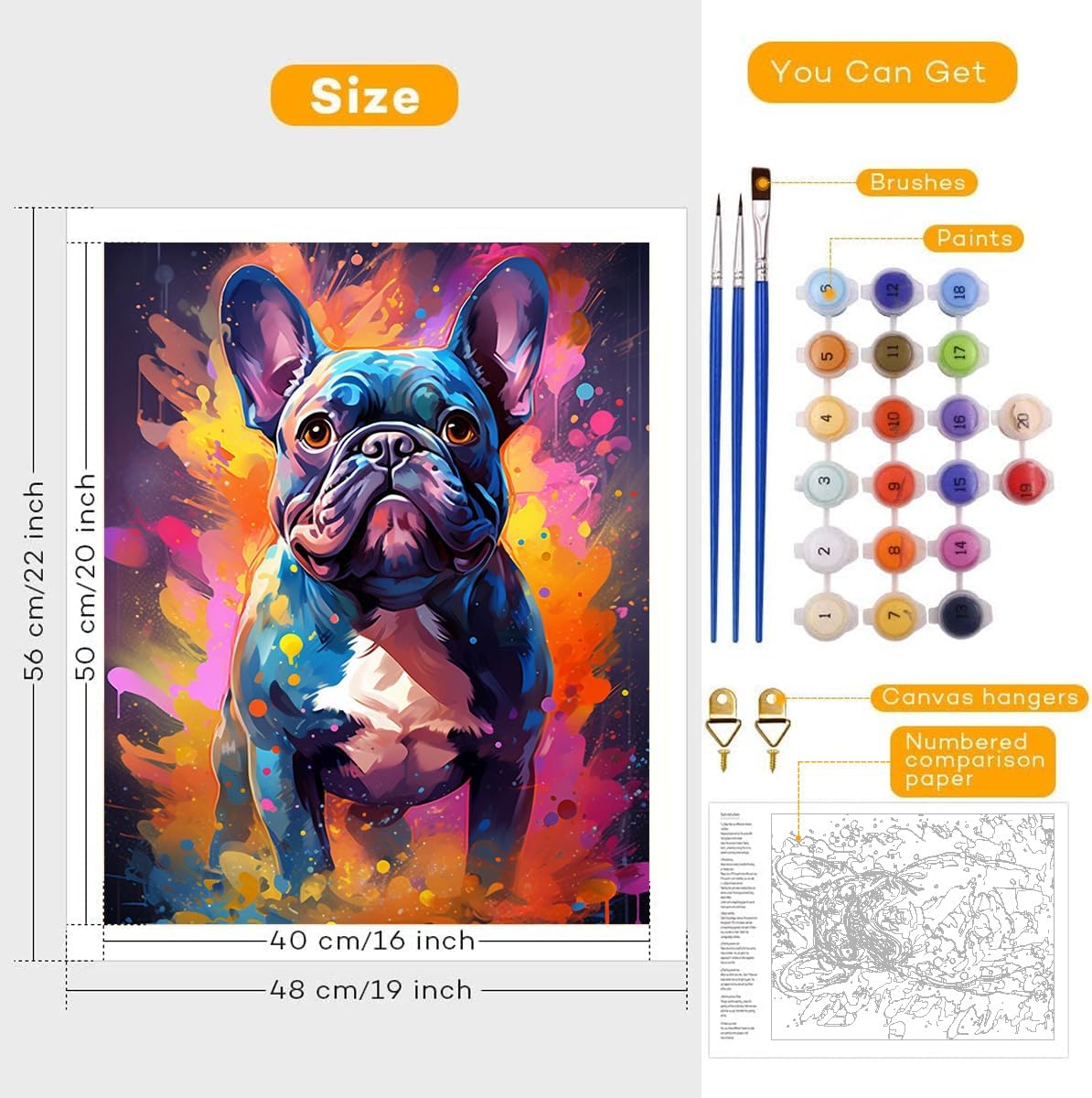 LiHEQING Kit di pennelli per dipingere con i numeri, motivo: bulldog, fai da te, per adulti e principianti, per decorare le pareti della casa, senza cornice (60 x 75 cm)