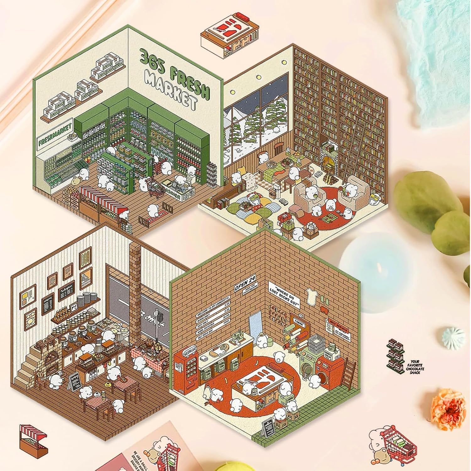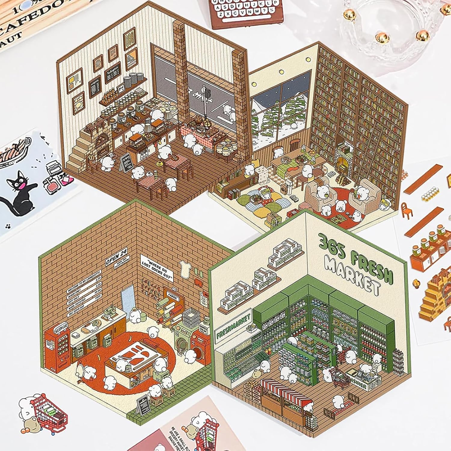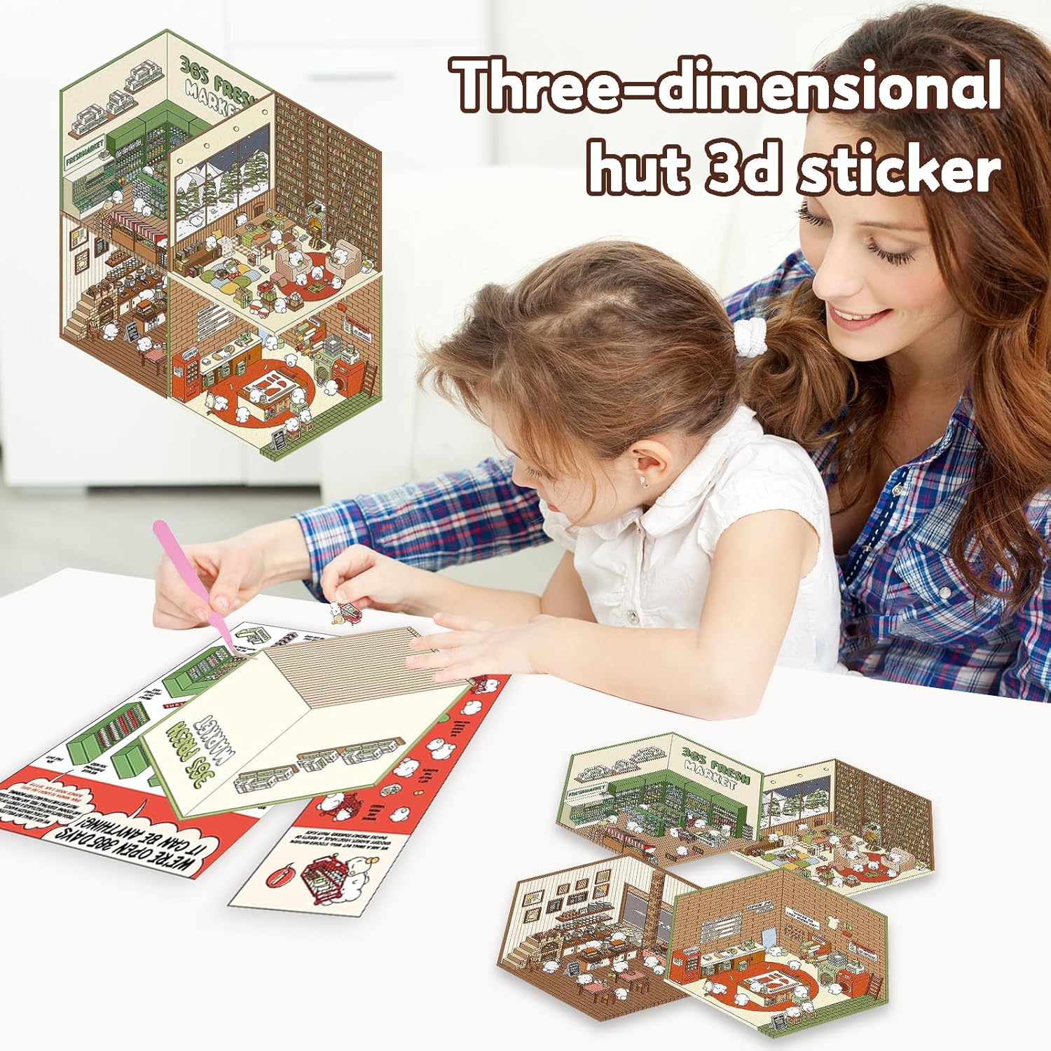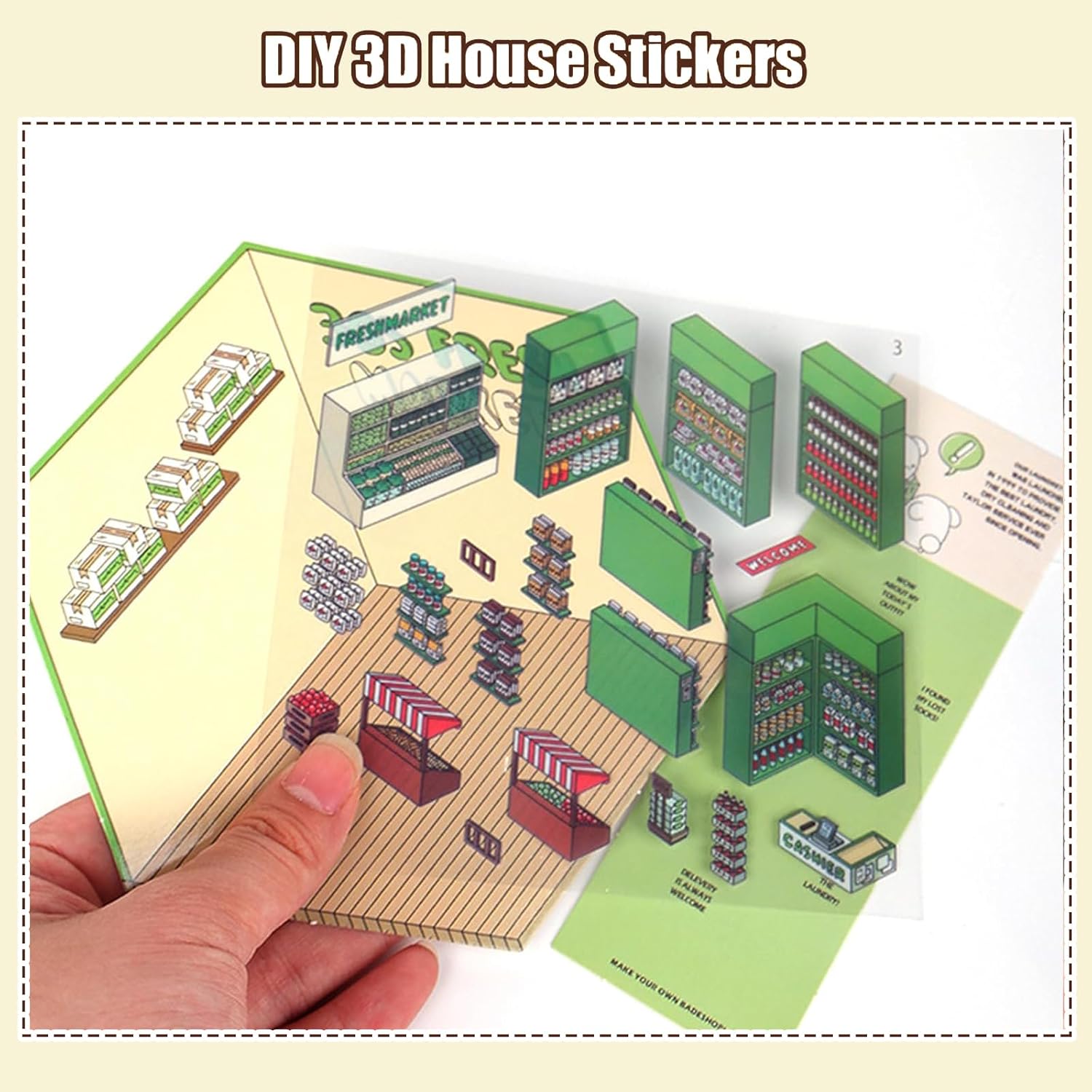 Varie scene: questo set di adesivi 3D contiene 4 adesivi per scene, 4 adesivi per personaggi, 4 fogli di sfondo e pinzette nere. Le scene includono supermercato, panetteria, lavanderia e sala studio. Perfetto per decorare album di ritagli, diari o album fotografici. Sblocca la creatività: questi adesivi ti consentono di creare le tue scene di case in miniatura e incoraggiare la creatività. Bambini e adulti possono disporre gli adesivi individualmente per creare disegni unici. Ideale per progetti artigianali fai-da-te. Materiali di alta qualità: gli adesivi 3D sono realizzati con carta di alta qualità, sono durevoli e non tossici. I motivi chiari creano un fantastico effetto stereoscopico e gli adesivi sono facili da staccare e riorganizzare senza lasciare segni. Pinzette incluse: il set viene fornito con pinzette che consentono un'applicazione precisa. Gli adesivi sono adatti a vari progetti creativi e rendono il processo creativo facile e divertente per tutte le età. Ottimo regalo: questo set di adesivi 3D è un regalo ideale per compleanni, vacanze o altre occasioni speciali. È fantastico per chi ama il fai da te e i progetti creativi e si adatta a interessi ed età diversi.