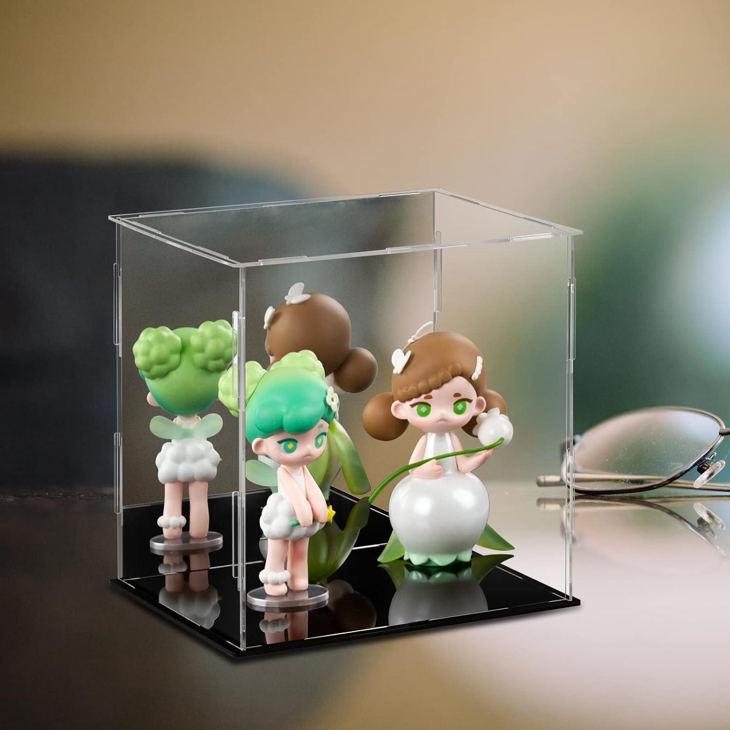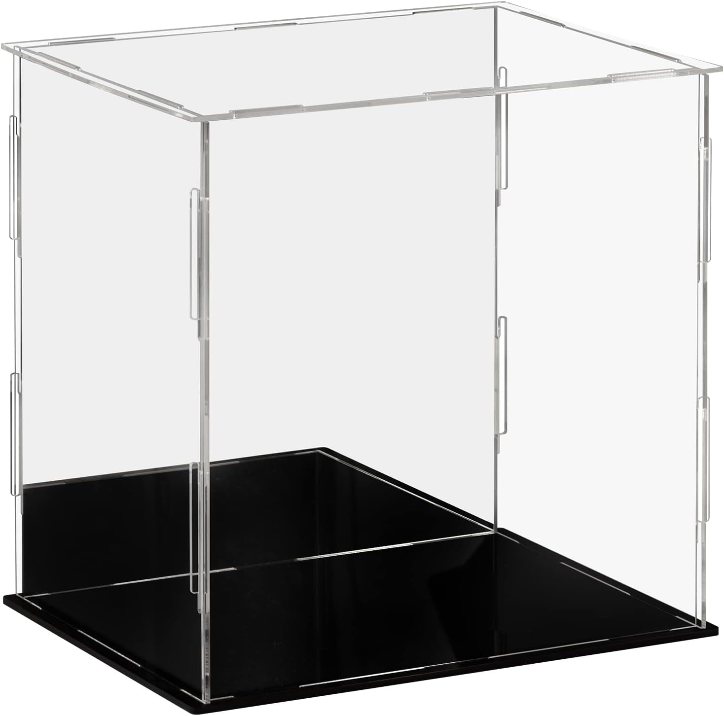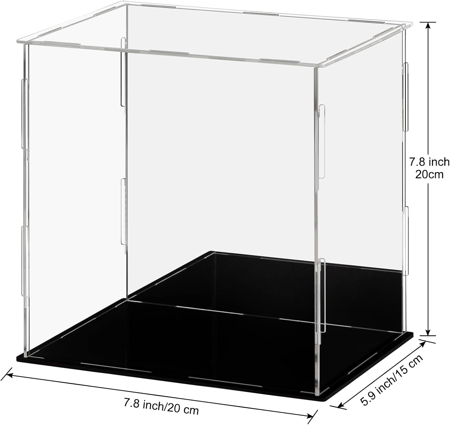 Ich war lange auf der Suche nach einer passenden Vitrine für meinen ArtFX Darth Vader (Return of Anakin Skywalker, wer es googlen mag), was gar nicht so einfach war, weil die Figur durch das vor sich gehaltene Lichtschwert etwas zu hoch für die normalen Vitrinen ist. Bei der LileZbox Vitrine mit den Maßen 15*15*25 cm bin ich dann aber fündig geworden. Der Versand erfolgt, amazon-typisch, schnell; die Vitrine kommt zerlegt in einem flachen Umschlag an. Im Umschlag befinden sich neben den Vitrinenteilen (4 Wände, davon eine verspiegelt, Deckel durchsichtig, Boden schwarz) zwei (leider sehr kleine) Stoffhandschuhe, ein kleines Staubtuch und eine bebilderte einseitige Zusammenbauanleitung. Die Handschuhe sind für Männerhände etwas eng, lassen sich aber trotzdem einigermaßen gut anziehen. Der Zusammenbau geht fix von der Hand; zunächst einmal muss man von jedem Teil die Schutzfolie abknibbeln - eine Aufgabe für Leute mit Geduld UND spitzen Fingernägeln. Die Folie haftet wirklich gut, hält aber auch die einzelnen Teile komplett staubfrei. Ich empfehle hier, einen Handschuh anzuziehen und mit der anderen Hand vorsichtig die Folie zu lösen, ohne auf die Plexiglasscheiben zu fassen. Bei den Plexiglasteilen (3 Seitenwände und das Dach) ist auf BEIDEN Seiten Folie aufgebracht, die natürlich auch auf beiden Seiten abgelöst werden muss - soviel zu "Das Plexiglas ist milchig". Bei der Rückseite ist die Folie nur auf dem Spiegel angebracht, bei der Bodenplatte auf der schwarzglänzenden Seite. Nach Ablösen der Folie lassen sich die Teile schnell gemäß der beigefügten Anleitung zusammenstecken. Die Figur (oder was auch immer) die präsentiert werden soll, muss dann vor Aufsetzen des Deckels, am Besten sogar vor Einsetzen der letzten Seitenwand, in die Vitrine gestellt werden, da die Vitrine keine Türe hat. Ist die Vitrine erst einmal fertig montiert, steht sie fest und sicher; will man sie transportieren, sollte man aber mit einer Hand unter die Vitrine fassen und sie mit der anderen Hand halten. Wenn man ganz sicher gehen will, kann man natürlich die Wände mit 1-2 Tropfen transparentem Kunststoffkleber an Boden festkleben. Bleibt die Vitrine in der Regel an ihrem Platz stehen, ist das nicht erforderlich. Mein Darth Vader steht stabil auf seinem Magnetsockel, hat zu jeder Seite hin ausreichend Platz und von der Spitze des Lichtschwertes bis zur Decke der Vitrine sind es noch gute 1,5 Zentimeter. Passt also perfekt! Als Fazit kann man feststellen, dass man hier zum sehr günstigen Preis eine sauber verarbeitete, hinreichend stabile und optisch sehr ansprechende Plexiglas-Vitrine kauft.