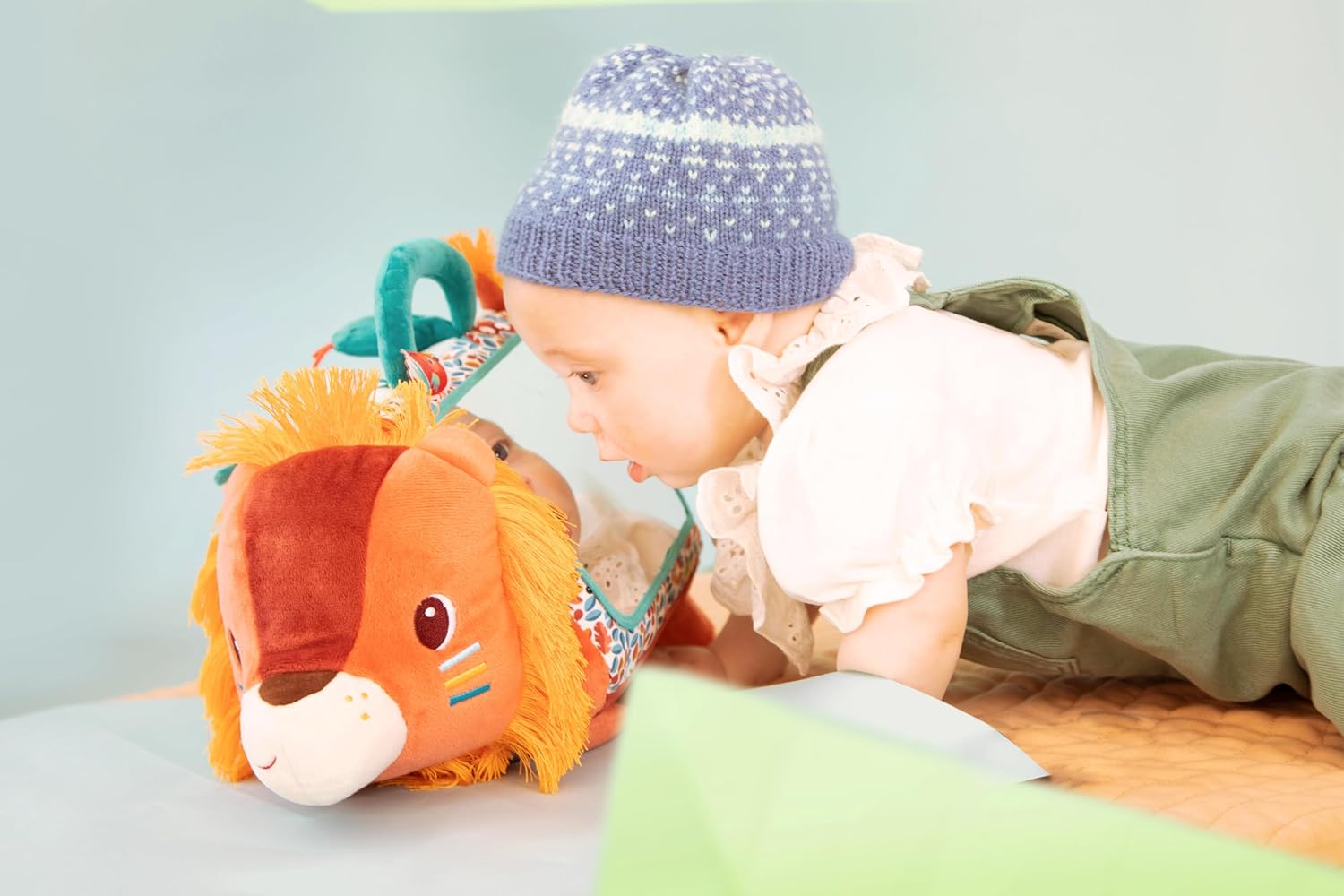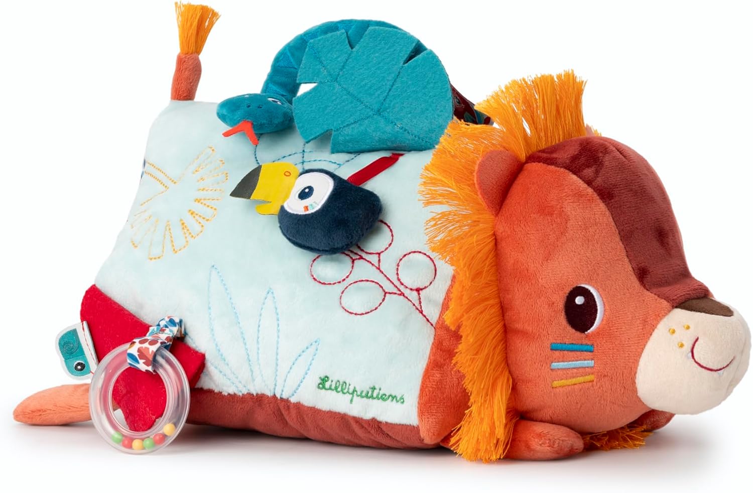 UN TRIANGOLO COMPLETO DI ATTIVITÀ: Jack il leone accompagna il bambino dai 3 mesi con 6 attività sensoriali, uno specchio gigante, una "pattumiera", sonagli, una varietà di texture e un pratico manico a serpente per portarlo ovunque. APPRENDIMENTO SENSORIALE GARANTITO: questo giocattolo stimola la vista, il tatto e l'udito con i suoi suoni divertenti, i nastri da manipolare, le texture contrastanti e l'accattivante specchio. Perfetto per il momento del pancino o del pavimento. UN AMICO FESTIVO E TOCCABILE: con i suoi colori da giungla, la sua palla croccante e le sue sorprese interattive, Jack diventa rapidamente l'amico preferito del bambino. Un giocattolo morbido, intelligente e divertente per esplorare il mondo fin dai primi mesi. CARATTERISTICHE: peluche leone a forma di triangolo con grande specchio in poliestere e cotone. Lavaggio solo in superficie IL MARCHIO LITTLE PLUS: Progettato con cura in Belgio, Lilliputiens crea giocattoli innovativi, divertenti e simpatici. Scegliete un giocattolo che crescerà con il vostro piccolo e che vi regalerà momenti di gioco memorabili.