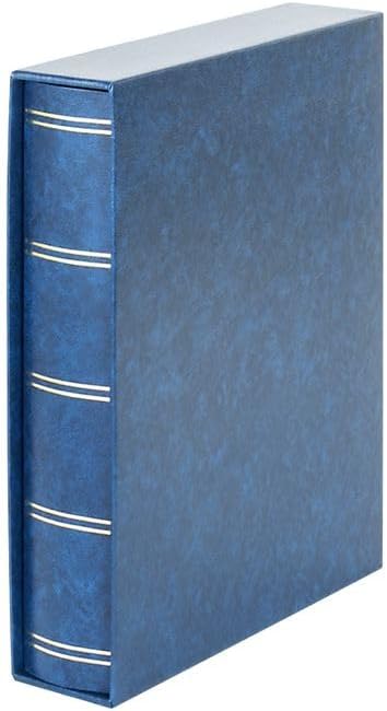 Album con rilegatura imbottita e in similpelle, e custodia in colore coordinato in cartone laminato. 60 pagine bianche (30 fogli) con doppia giuntura in lino, con 10 strisce e doppio foglio intercalato in carta pergamena. Formato: 240x 320 mm. Con linee dorate sulla copertina e sul retro.