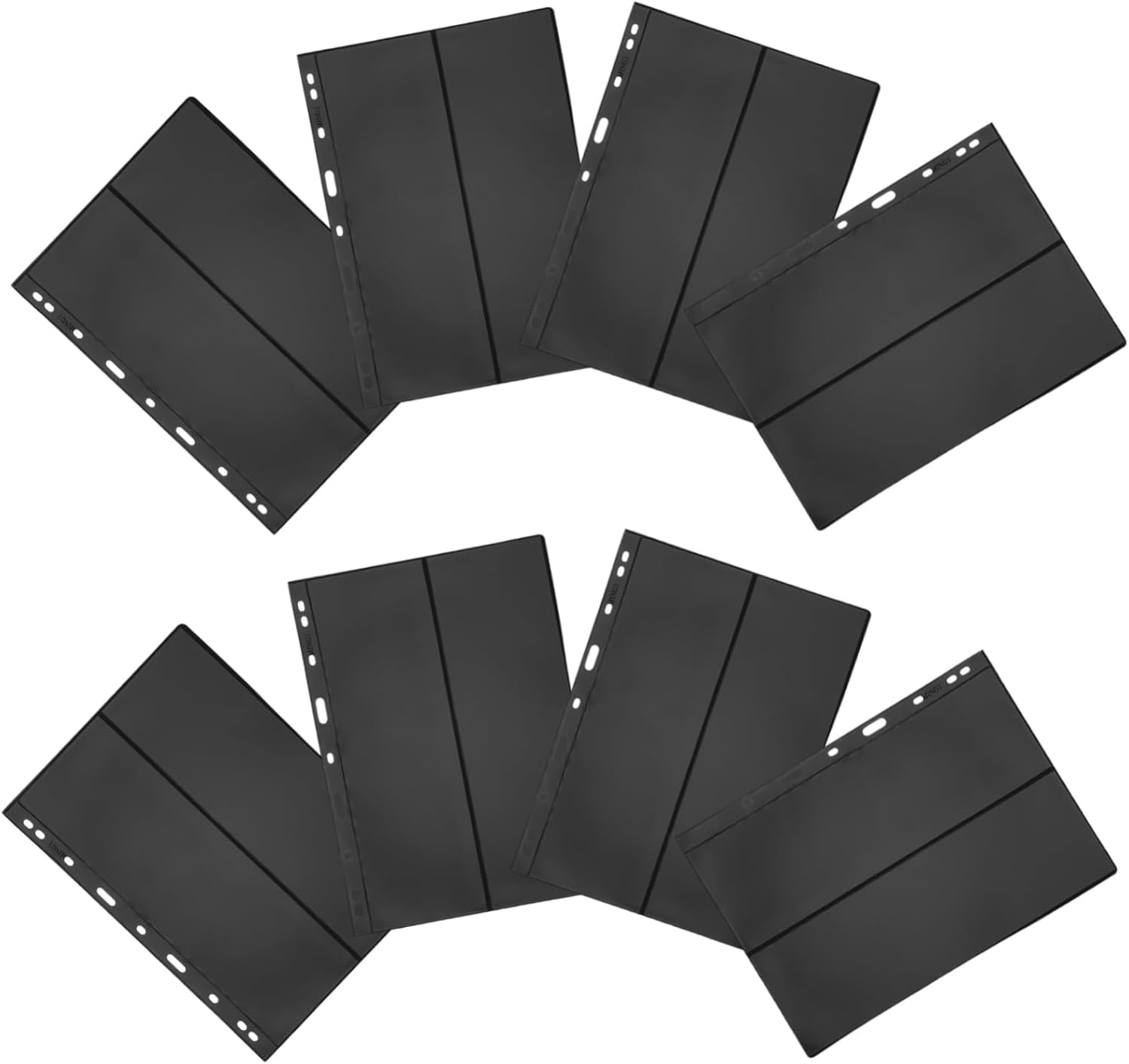 Stockbook, unpadded leatherette. 16 white pages (8 sheets) with linen hinge 9 glassine strips per page, double interleaving pages Format: 230 x 305 Golden stripes on lid and spine
