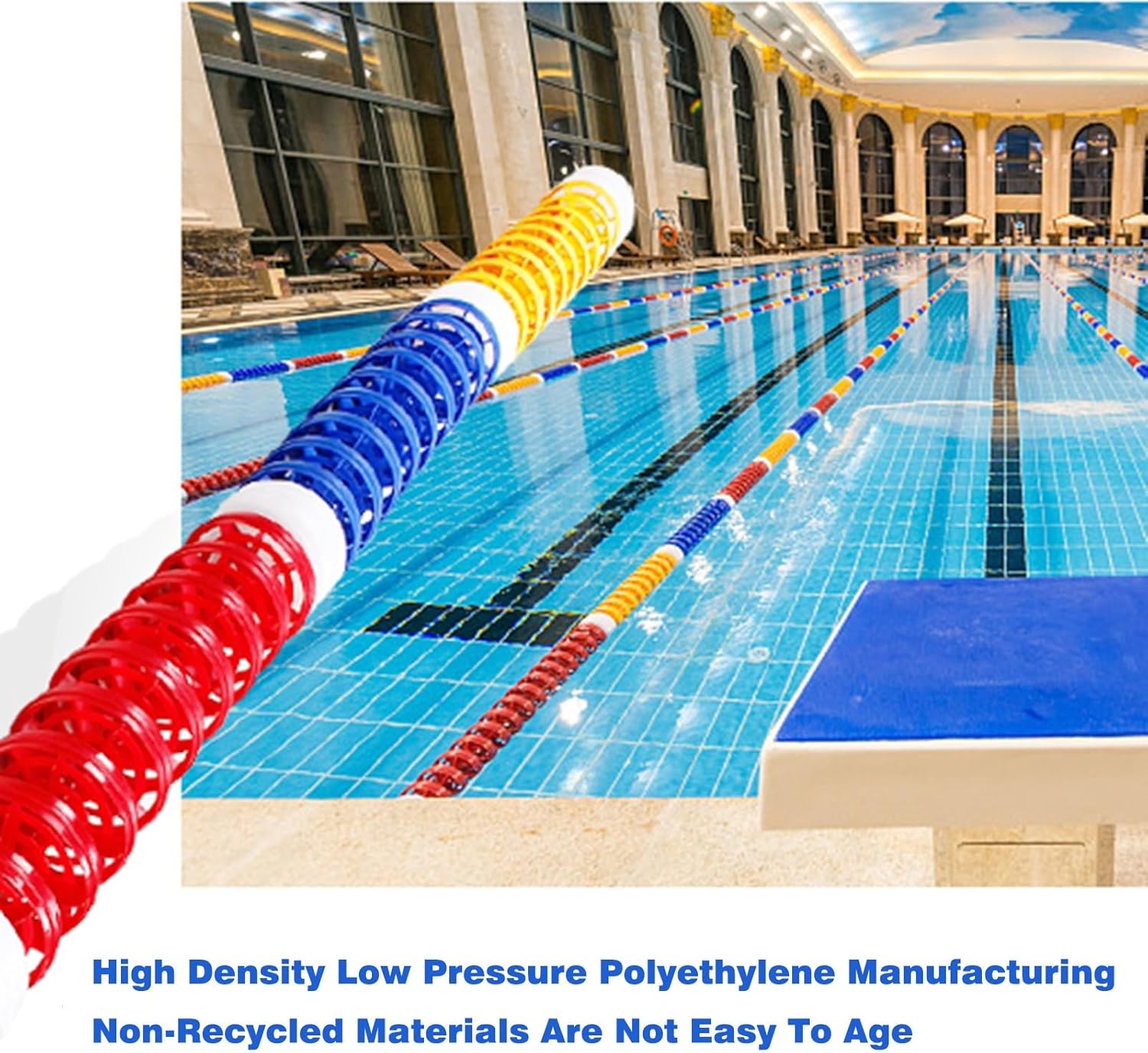 Parametri del prodotto: La linea di boe di sicurezza da 1 m/3,3 piedi ha 17 boe, ciascuna lunghezza della boa: 5,5 cm/2,1 pollici, larghezza: 11 cm/4,3 pollici. La corda può soddisfare le tue esigenze e quelle della piscina, mentre le boe integrate possono essere spostate per creare un'efficace percezione visiva per i nuotatori. Ampiamente utilizzato: la boa di sicurezza è utilizzata principalmente come ausilio alla navigazione in superficie, come piscine, vie navigabili interne, corsi d'acqua, ostacoli poco profondi e altri aiuti alla navigazione in superficie. Durevole e duraturo: la corda è progettata con due materiali, nylon resistente e filo di acciaio, e le boe sono realizzate in polietilene molto duro, leggero, galleggiante e molto stabile. Ma non si spezzeranno e non sbiadiranno a causa dell'esposizione alla luce solare e all'acqua e possono essere utilizzate per lungo tempo. Corda di sicurezza per piscina: il kit boa di corda è un must per la sicurezza in piscina. Utilizza questo kit per separare le aree di acqua bassa e profonda della piscina e distinguere facilmente i cambiamenti di profondità. Può anche essere utilizzato per creare corsie per allenamento e competizione, che possono essere perfettamente integrate con la tua piscina. Design ad alta visibilità: le 17 boe per piscina hanno colori altamente visibili e sono facilmente visibili anche da lontano. Ciò garantisce che la corda di sicurezza della piscina sia chiaramente visibile ai nuotatori, ricordando loro i confini e aiutando a prevenire collisioni o accessi non autorizzati alle aree riservate della piscina.