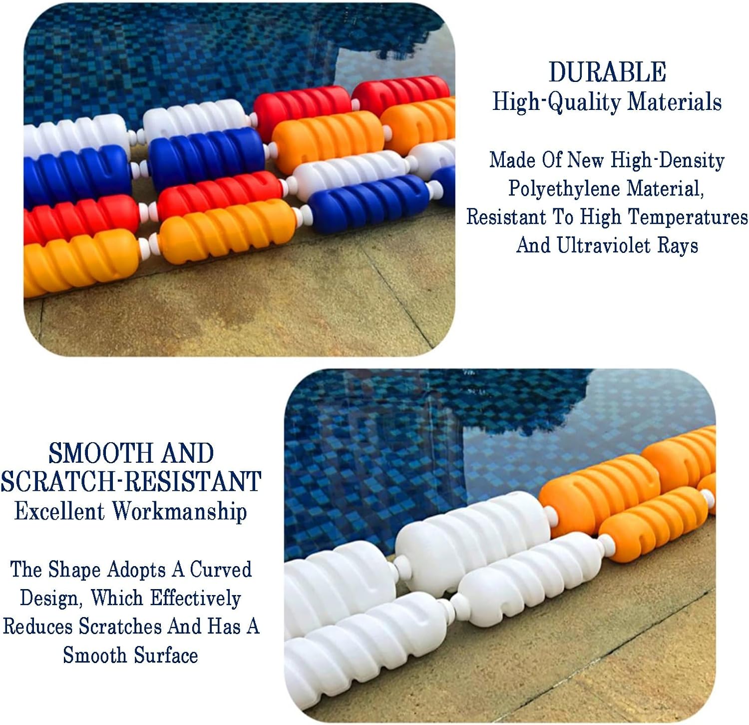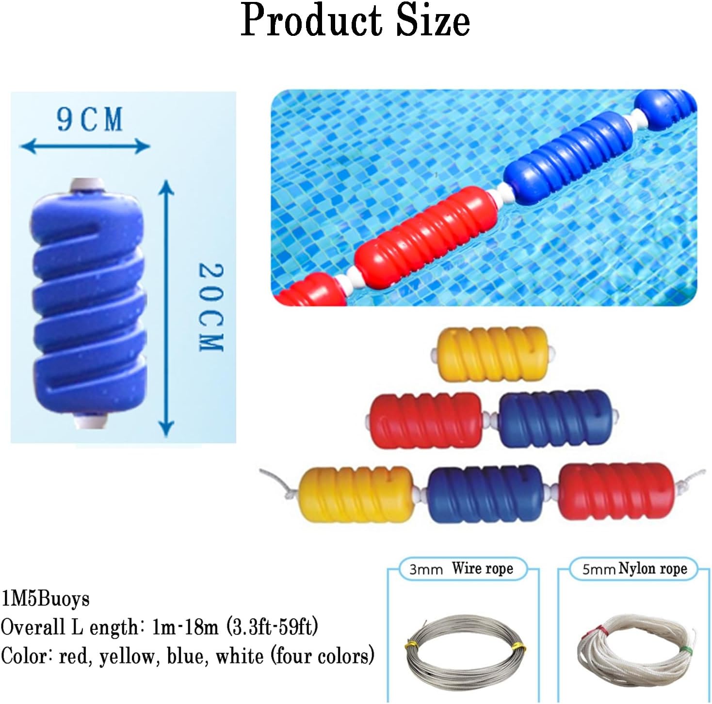 Facile da installare: la linea di boa di sicurezza adotta ganci in acciaio inossidabile, che sono più facili e più convenienti da installare. Dopo essere stato riparato, è molto stabile e non si allenterà. Design ad alta visibilità: la boa per piscina ha un colore altamente visibile che è facile da vedere anche da lontano. Ciò garantisce che la corda di sicurezza della piscina sia chiaramente visibile ai nuotatori, ricordando loro i confini e aiutando a prevenire collisioni o accessi non autorizzati alle aree riservate della piscina. Durevole e duraturo: la corda è progettata con due materiali, nylon resistente e filo di acciaio, e le boe sono realizzate in polietilene molto duro, che è leggero, galleggiante e molto stabile. Ma non si spezzeranno e non sbiadiranno a causa dell'esposizione alla luce solare e all'acqua e possono essere utilizzate per lungo tempo. Parametri del prodotto: la linea di boa di sicurezza da 1 m/3,3 piedi ha 5 boe, ciascuna lunghezza della boa: 20 cm/7,8 pollici, larghezza: 9 cm/3,5 pollici. La corda può soddisfare le tue esigenze e quelle della piscina, mentre le boe integrate possono essere spostate per creare un'efficace percezione visiva per i nuotatori. Maggiore sicurezza in piscina: la nostra corda di sicurezza per piscina con boe è progettata per fornire ulteriore sicurezza alla tua piscina. Utilizza boe dai colori vivaci e corde resistenti per formare una barriera trasparente che separa l'acqua bassa da quella profonda, impedendo ai nuotatori giovani e inesperti di entrare in acque profonde, contribuendo a ridurre il rischio di incidenti e garantendo un ambiente di nuoto sicuro.