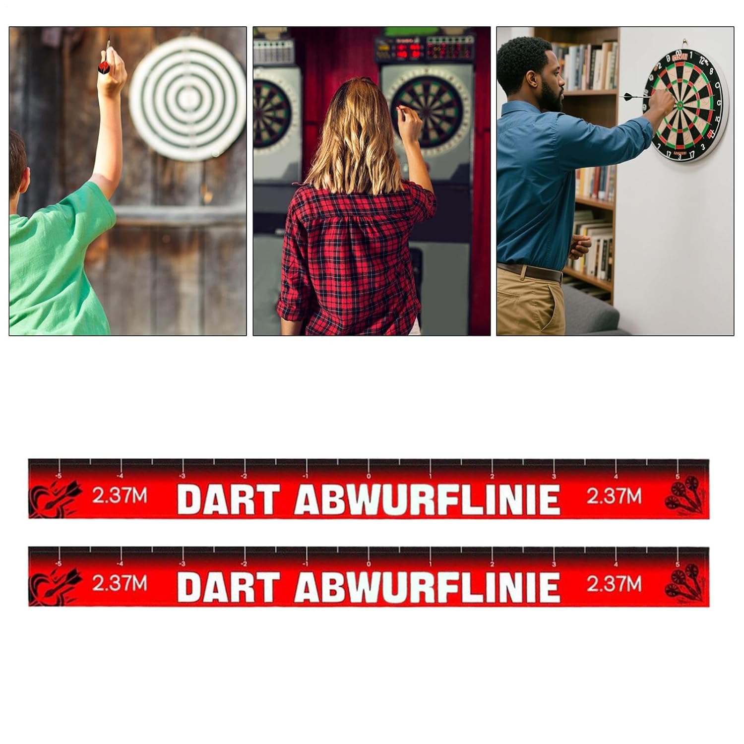 Design Fair Play: promuove il corretto posizionamento del piede e l'allineamento ottimale per aumentare la precisione e la consistenza, con una linea di lancio visibile che garantisce equità in ogni configurazione competitiva Linee per freccette pronte per il gioco: con due linee di dimensioni standard che misurano 56 x 5 cm, questo pacchetto fornisce tutto il necessario per i giochi di freccette, garantendo prestazioni affidabili e integrazione senza soluzione di continuità nella tua area di gioco Installazione semplice: assicura un fissaggio senza soluzione di continuità alla maggior parte delle opzioni di pavimentazione, con funzionalità di installazione e rimozione rapide, rendendolo ideale per i giocatori di freccette di tutti i livelli che cercano soluzioni di installazione efficienti Prestazioni di lunga durata: realizzato in robusta carta patinata con forte adesivo, resiste all'uso ripetuto e mantiene il suo aspetto senza staccarsi o sbiadire Ampio utilizzo: ideale sia per la casa che per il bar, migliora i giochi di freccette in qualsiasi luogo, offrendo una soluzione multifunzionale che si adatta perfettamente alle sale giochi e all'intrattenimento delle feste
