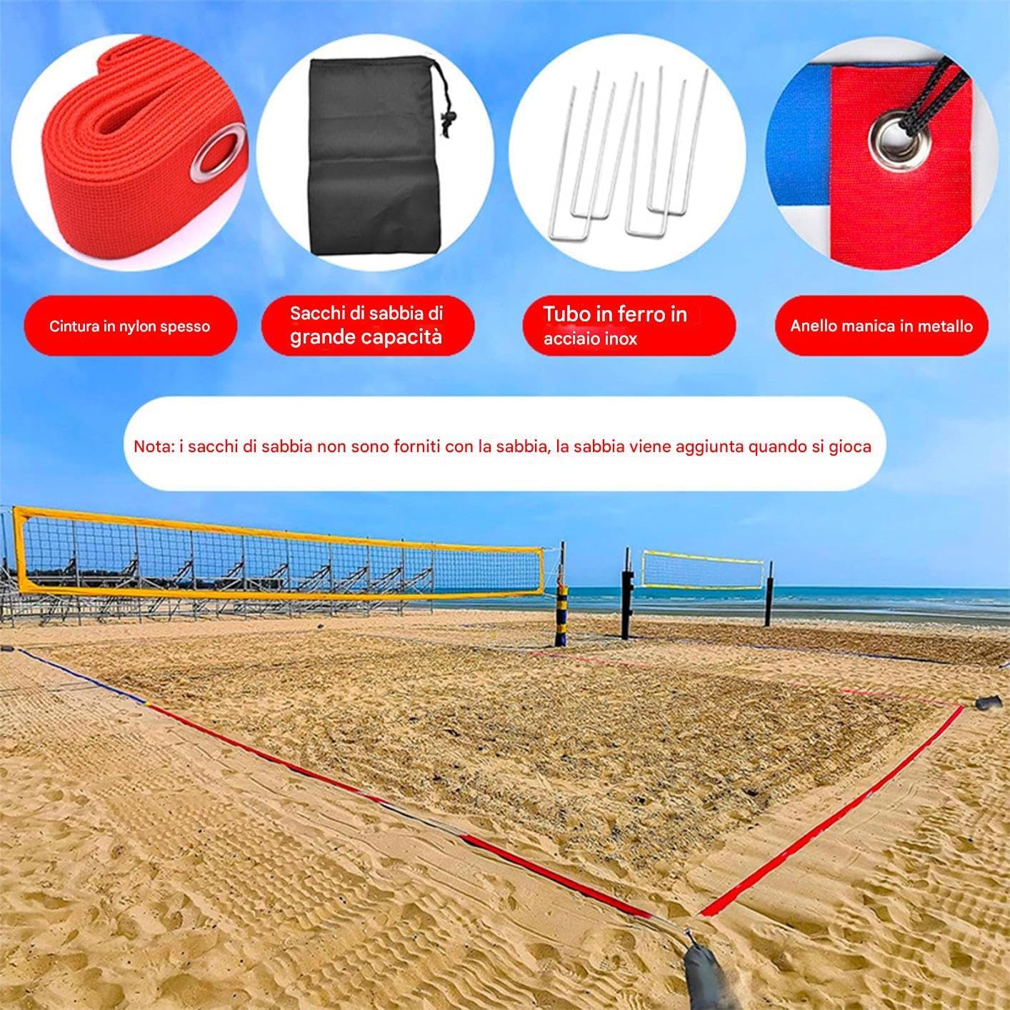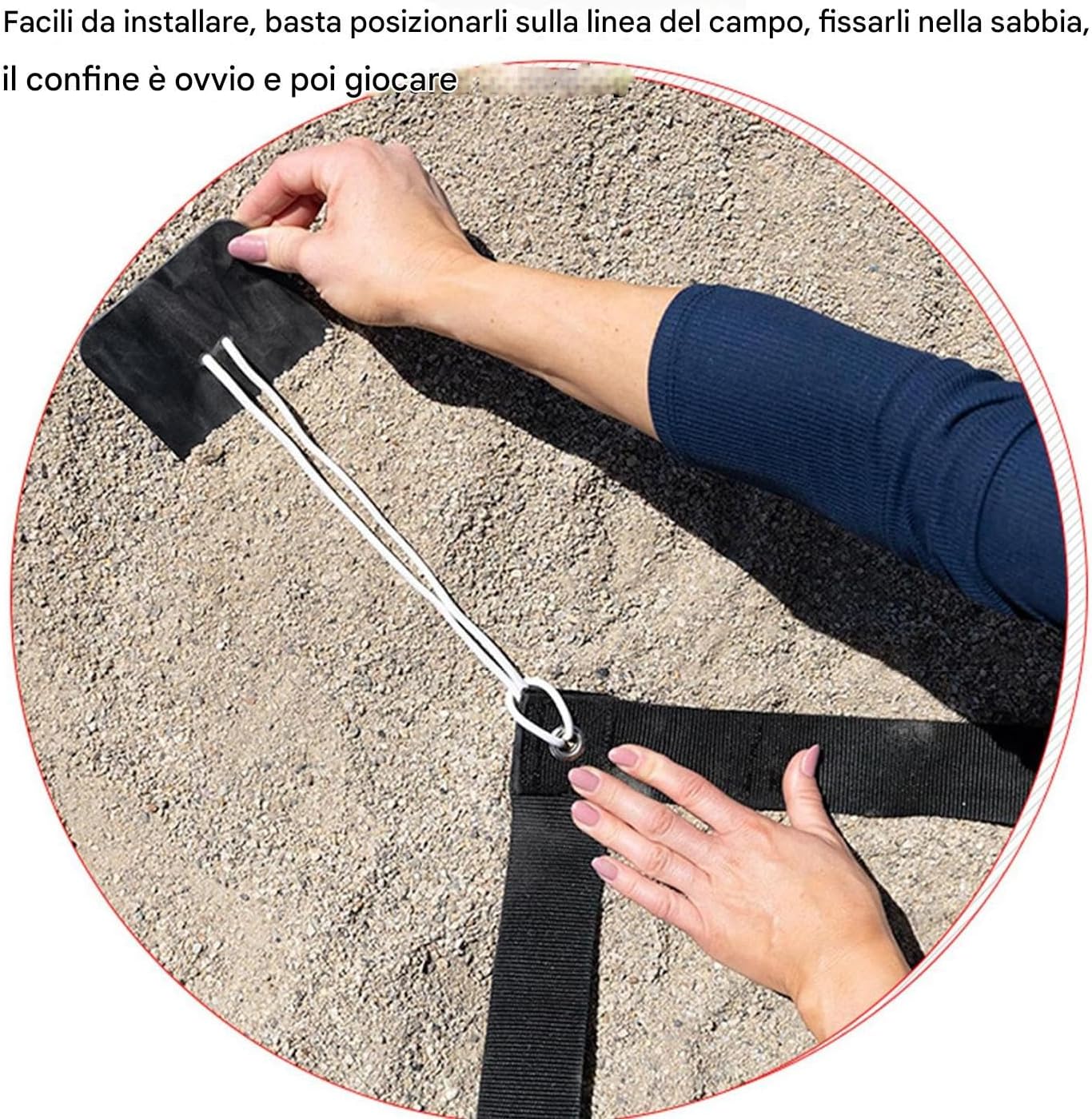 Sicurezza Fissaggio: Cucitura rinforzata aumenta la resistenza delle cinghie tessute, previene l'usura e garantisce posizionamento stabile nel anche in condizioni intensive di pallavolo da spiaggia Praticità Assoluta: Soluzione pieghevole e ultraportatile per installare campo all'aperto in parco litorale o zona privata con gestione intuitiva senza sforzo Affidabilità del Campo: Bordo spesso garantisce marcatura dei limiti, efficace su terreni misti spiaggia e prato con prestazioni costanti dopo Posizionamento Intuitivo: pratico per delimitare il campo da pallavolo spiaggia con linee luminose, montaggio semplificato senza strumenti per ottimizzare gli allenamenti all'aperto con confini precisi Linee Sportive Multiuso: Eccellenti per campi da volley ma adattabili al badminton, garantiscono ottime prestazioni su spiaggia e parco, rendendo lo sport in giardino più piacevole con applicazione multifunzionale all'aperto