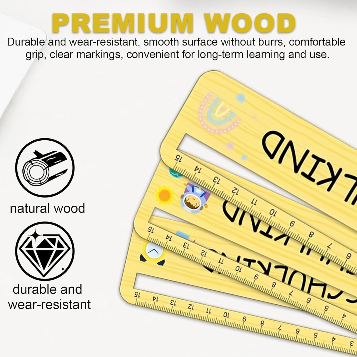 Materiale di Alta Qualità: Legno segnalibro righello da lettura è realizzato in legno di alta qualità con una superficie liscia e senza sbavature, è durevole, resistente a deformazioni, danni e scolorimento, le marcature chiare garantiscono un utilizzo a lungo termine Doppia Funzione: Lettura righello misura 17 cm di lunghezza e 5 cm di larghezza, con marcature precise che soddisfano le esigenze di misurazione e disegno degli studenti delle scuole elementari, serve anche come ausilio per la lettura, bloccando il testo per aiutare I bambini a concentrarsi, è particolarmente adatto ai bambini con menti facilmente distraibili, migliorando l'efficienza dell'apprendimento Motivi Divertenti: Gadget per lettori per dislessia presenta motivi vivaci e chiari di frutta, cartoni animati, animali, arcobaleni e altro ancora, scegli il tuo motivo preferito, questi simpatici motivi portano gioia e ti aiutano a imparare a conoscere diversi frutti e animali mentre li usi Contenuto della Confezione: Il set righello lettura dislessia include 6 righelli con motivi diversi, adatti a bambini di diverse materie, è perfetto per le famiglie con più bambini e può essere utilizzato come premio di classe o come regalo per I compagni, aiutando a tenere in ordine il materiale scolastico Texture Calda: Segnariga lettura per dislessia con la sua calda texture gialla, permette ai bambini di percepire la bellezza della natura e di migliorare il loro senso estetico, è adatto anche a diversi ambienti di apprendimento e non distrae l'attenzione a causa di dettagli particolari, è sia pratico che estetico