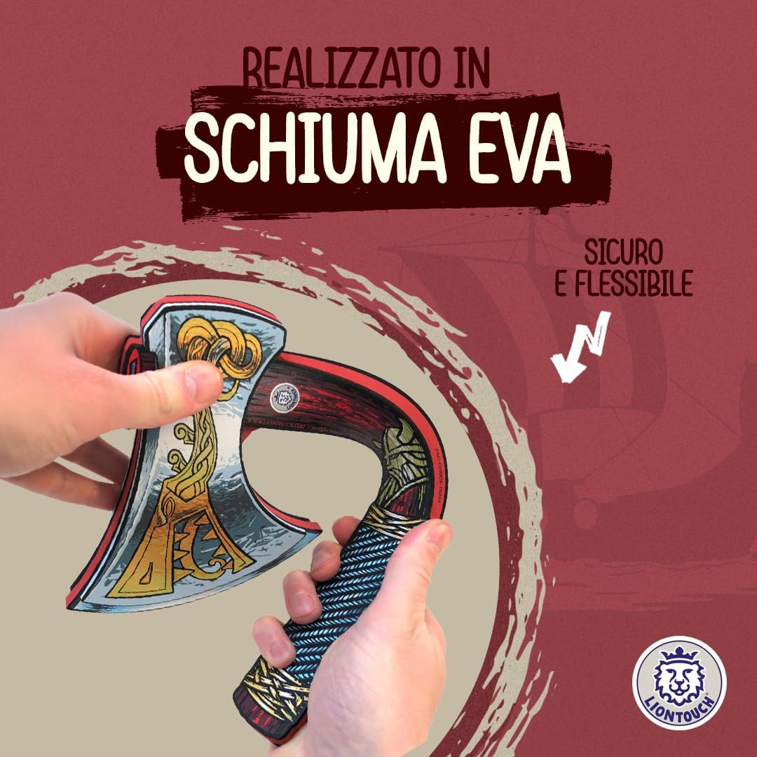 Risveglia l'immaginazione avventurosa dei bambini dai 3 agli 8 anni con l'Ascia Vichinga Liontouch. Perfetta come regalo di compleanno, dono di Natale o come parte di un costume vichingo per Halloween e Carnevale. Brandisci l'Ascia Vichinga Liontouch con la forza del leggendario capo vichingo Harald. Incuti timore nei cuori dei nemici e goditi le risate dei tuoi compagni vichinghi all'idea che una forza straniera possa sfidarti. Canalizza la potente forza dei guerrieri vichinghi con l'Ascia Vichinga Liontouch. Aggiungi questo accessorio essenziale al tuo costume da guerriero scandinavo e preparati per battaglie leggendarie. Realizzato in schiuma EVA morbida e flessibile, il giocattolo promuove un gioco immaginativo e sicuro. Il suo design nordico rispetta gli standard di sicurezza europei e americani, permettendo ai bambini di avventurarsi in sicurezza nel mondo dei vichinghi. Giocattoli vichinghi danesi per bambini con attenzione ai dettagli e focus sulla qualità. Progettati per ispirare il gioco attivo usando solo l'immaginazione dei bambini, i giocattoli Liontouch promuovono il movimento fisico e offrono un'alternativa divertente e senza schermi.