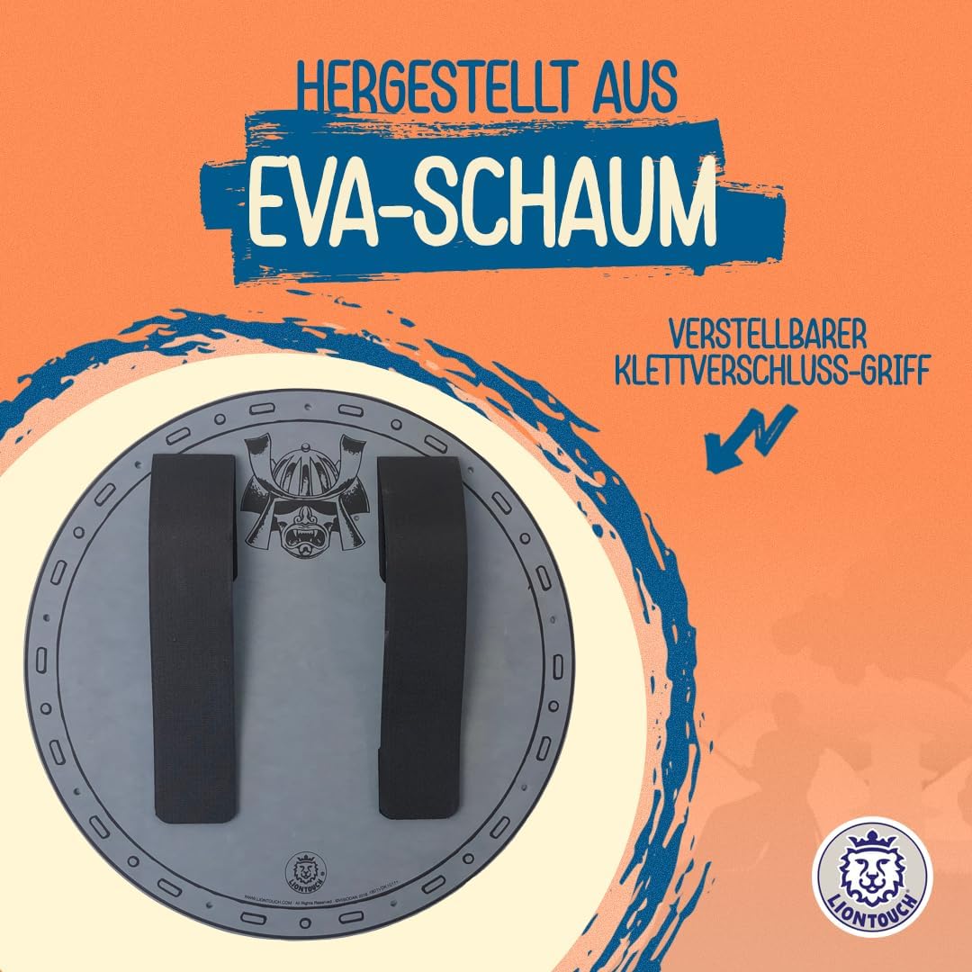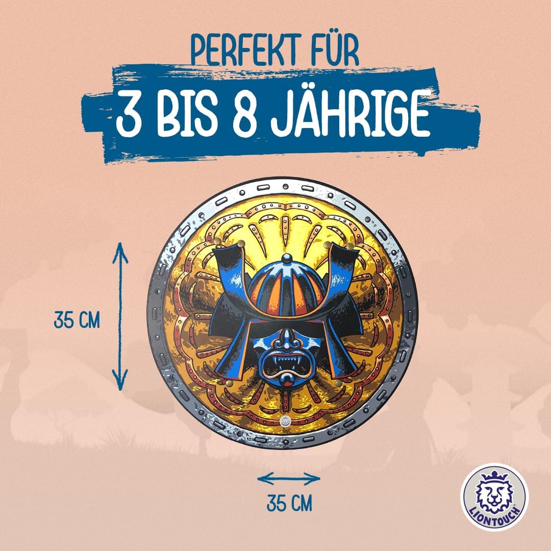 The Liontouch 29501LT Samurai Foam Toy Shield For Kids | Part Of A Kid's Costume Line arrives well packaged. Its first appearance is of good quality, constructions, robustness and design. The shield is medium small in size, highly suitable for a 3+ year old child. We gave this to our grand-son who thinks this is brilliant. It suits his current play style and is really a very good addition to play-time. For the offer price this is advised at I think its a good buy and will not disappoint.