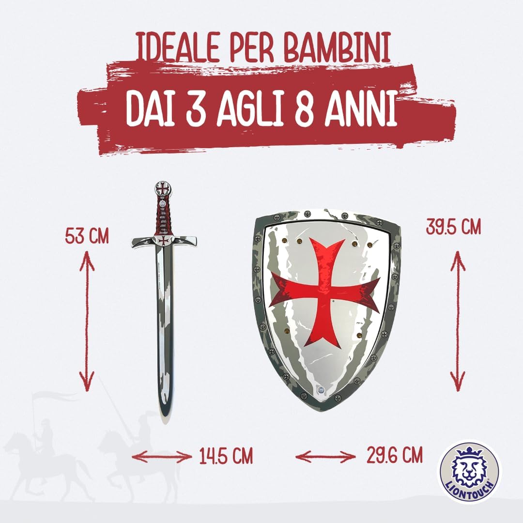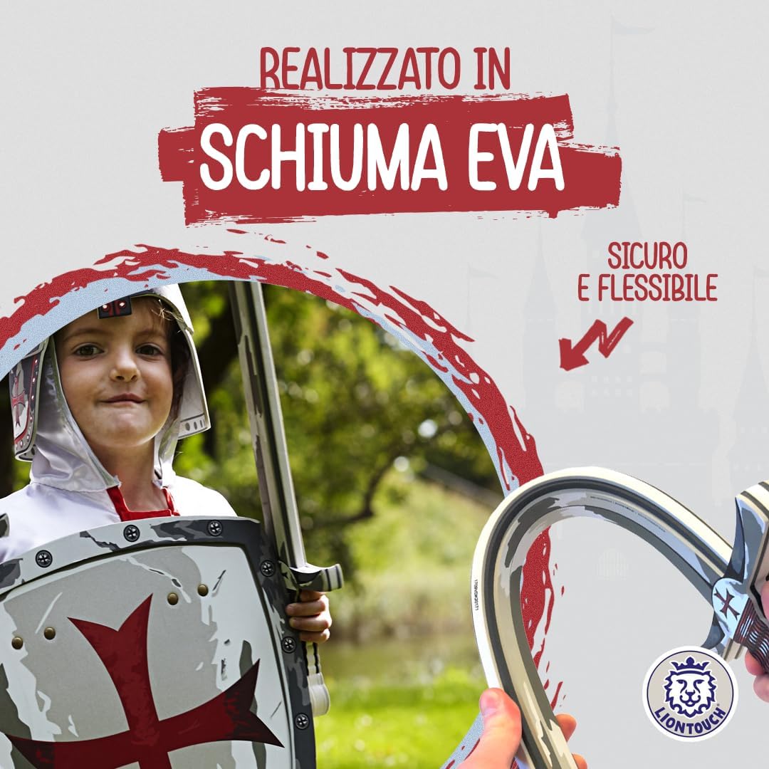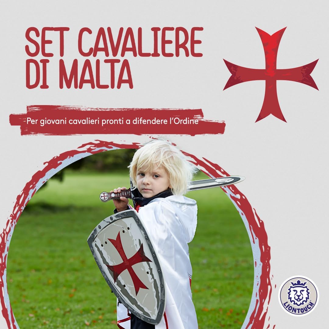 GIOCO DI FANTASIA per bambini dai 3 agli 8 anni con menti immaginative. Perfetto per compleanni, Natale, Halloween e Carnevale. Scopri i Cavalieri Maltesi, nobili protettori e Crociati Templari dal 1530. Vivi avventure eroiche e rivivi le loro leggendarie imprese! LA SPADA E LO SCUDO sono realizzati in schiuma flessibile e morbida che garantisce un cosplay sicuro e sono decorati con l'iconica Croce Rossa Maltese. Preparati a sconfiggere draghi e intraprendere missioni per salvare il Regno dal male. SPEDITO IN UNA CONFEZIONE REGALO pronta per essere donata e garantisce una piacevole esperienza di unboxing - contiene anche un piccolo catalogo dell'universo Liontouch. Ideale per qualsiasi occasione festiva e con accessori disponibili. TESTATO PER LA SICUREZZA in conformità con gli standard europei e americani ed è completamente flessibile, sicuro e stabile grazie alla qualità della schiuma e non utilizza stecche interne. Completamente sicuro e senza materiali tossici. GIOCATTOLI MEDIEVALI DANESI progettati per bambini con un focus su dettagli e qualità mirati a ispirare i bambini a giocare attivamente usando solo la loro immaginazione. Liontouch incoraggia il movimento fisico e offre ai bambini un divertimento senza schermi.