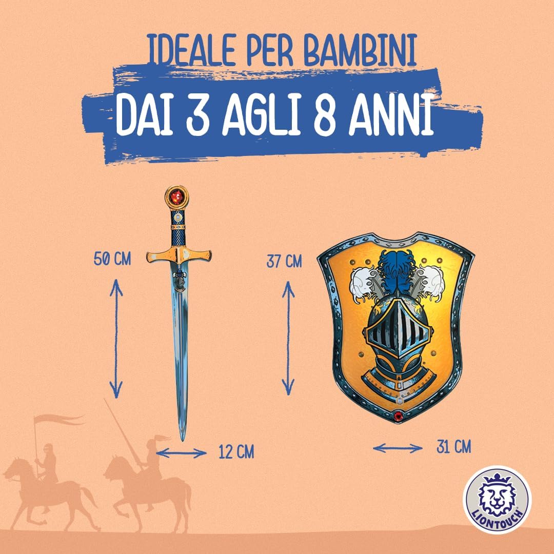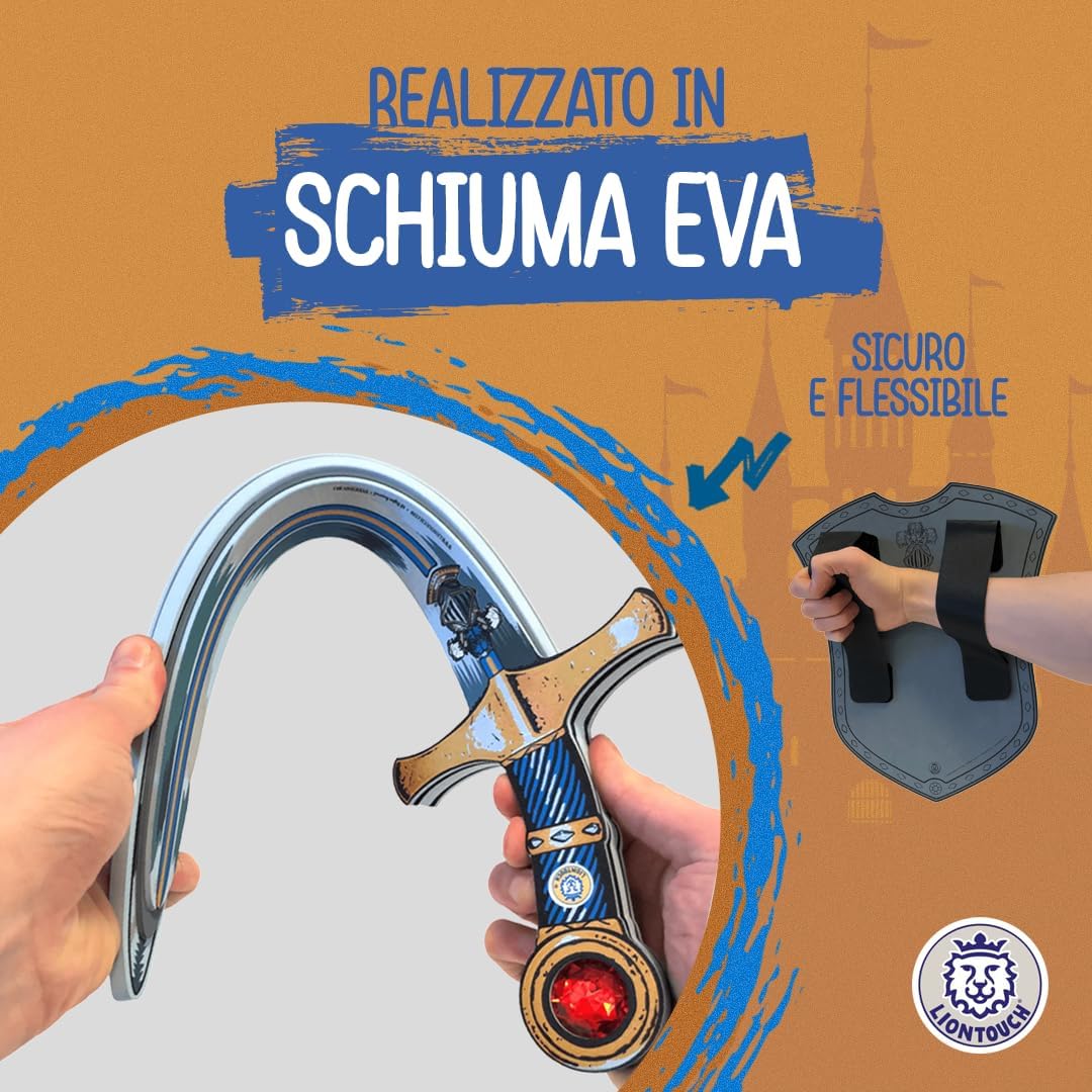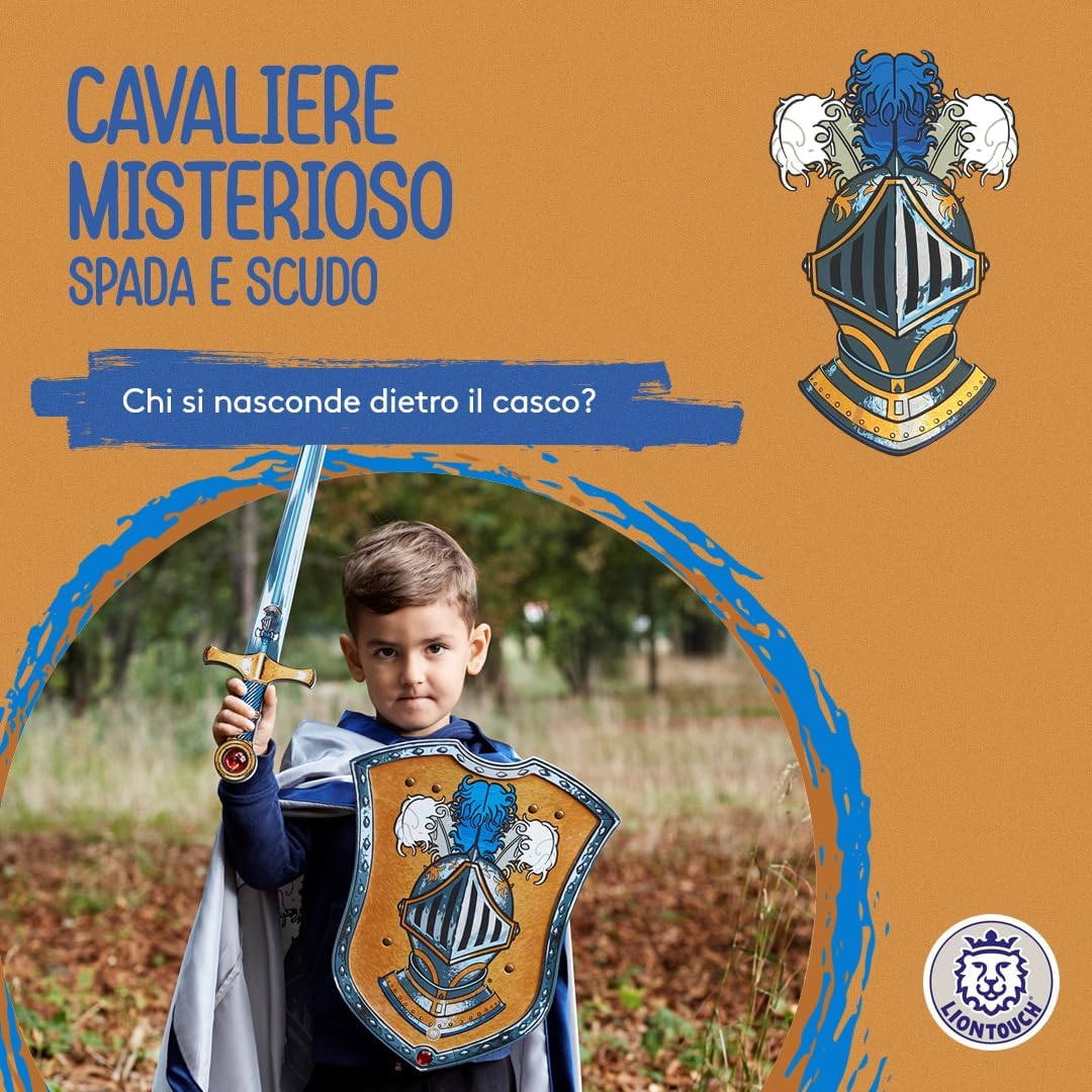 IDEALE PER IL GIOCO IMMAGINATIVO, ispira i bambini dai 3 agli 8 anni ad immergersi nell'affascinante storia del Cavaliere Misterioso. Questa figura enigmatica compete abilmente nei tornei dei cavalieri, mantenendo sapientemente la sua vera identità come un segreto ben custodito. LA SPADA E LO SCUDO sono realizzati in schiuma EVA flessibile e morbida che garantisce un cosplay sicuro e presenta dettagliate decorazioni a tema Cavaliere Misterioso. Preparati a sconfiggere draghi e ad intraprendere missioni per salvare il Regno dal male. SPEDITO IN UNA SCATOLA REGALO pronto per essere dato e garantire una piacevole esperienza di unboxing - contiene anche un piccolo catalogo dell'universo Liontouch. Ideale per ogni occasione festiva come compleanni, Natale, Halloween e carnevale e con accessori disponibili. TESTATO PER LA SICUREZZA in conformità con gli standard europei e americani ed è completamente flessibile, sicuro e stabile grazie alla qualità della schiuma e non utilizza stecche interne. Completamente sicuro e privo di materiali tossici. GIOCATTOLI MEDIEVALI DA CAVALIERE DISEGNATI IN DANIMARCA per bambini, con attenzione ai dettagli e alla qualità, mirati a ispirare i bambini a giocare attivamente usando solo la loro immaginazione. Liontouch incoraggia il movimento fisico e offre ai bambini un divertimento senza schermi.