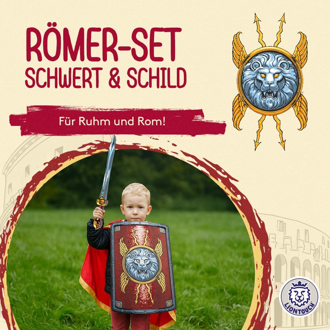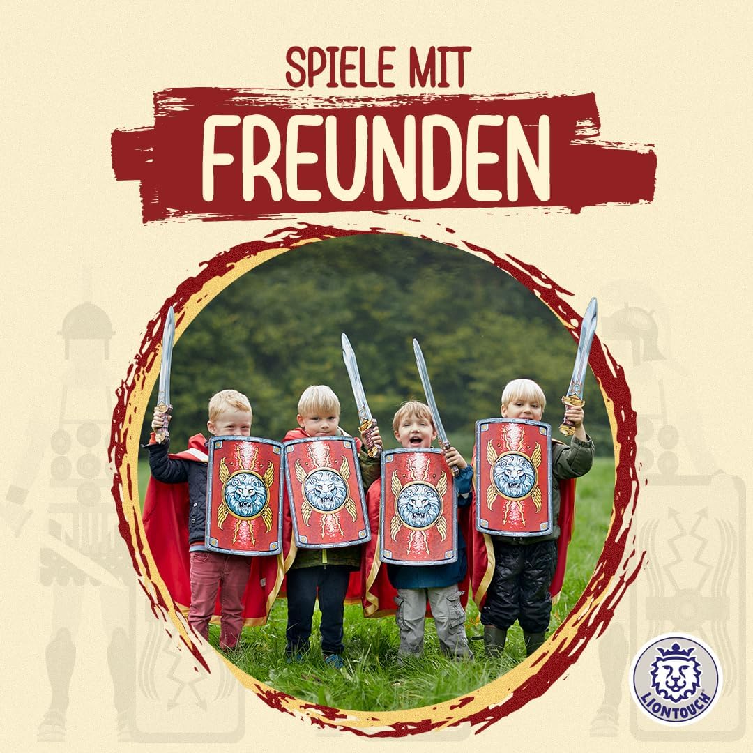 GIOCO IMMAGINATIVO per bambini e bambine dai 3 agli 8 anni con una mentalità fantasiosa e un senso di avventura. Perfetto per qualsiasi festa di compleanno, come regalo per Natale o per travestirsi per Halloween, carnevale e carnevale. LA SPADA E LO SCUDO sono realizzati in morbida schiuma EVA, garantiscono cosplay sicuri e portano decorazioni antiche dettagliate. Unisciti al Sacro Romano Impero e sperimenta l'ordine mondiale latino! SPEDITO IN UNA CONFEZIONE REGALO, pronto per essere regalato e costituisce una deliziosa esperienza di unboxing. Include anche un piccolo catalogo dell'universo Liontouch. Ideale per ogni occasione festiva e con accessori disponibili TESTATO DI SICUREZZA secondo gli standard europei e americani e completamente flessibile, sicuro e stabile grazie alla qualità della schiuma e non utilizza un bastone all'interno. Completamente sicuri e senza materiali tossici DESIGN DANESE di giocattoli medievali romani per bambini con particolare attenzione ai dettagli e alla qualità per incoraggiare i bambini al gioco attivo usando solo la loro immaginazione. Liontouch incoraggia l'attività fisica e offre ai bambini momenti divertenti e senza schermi
