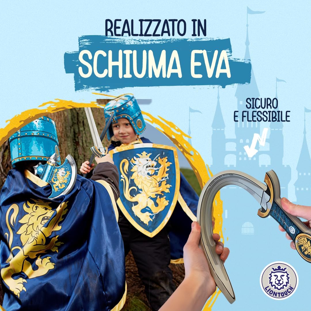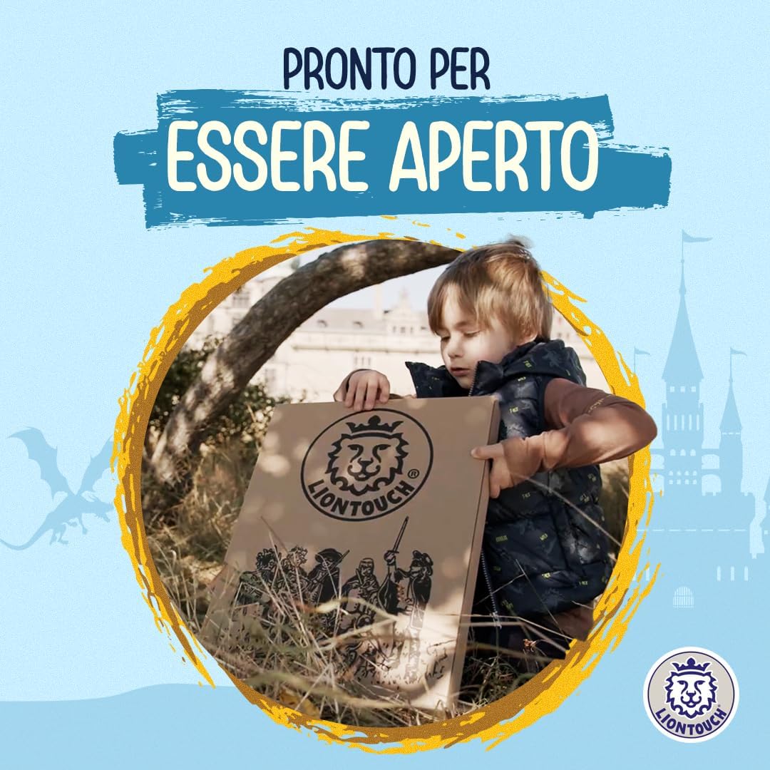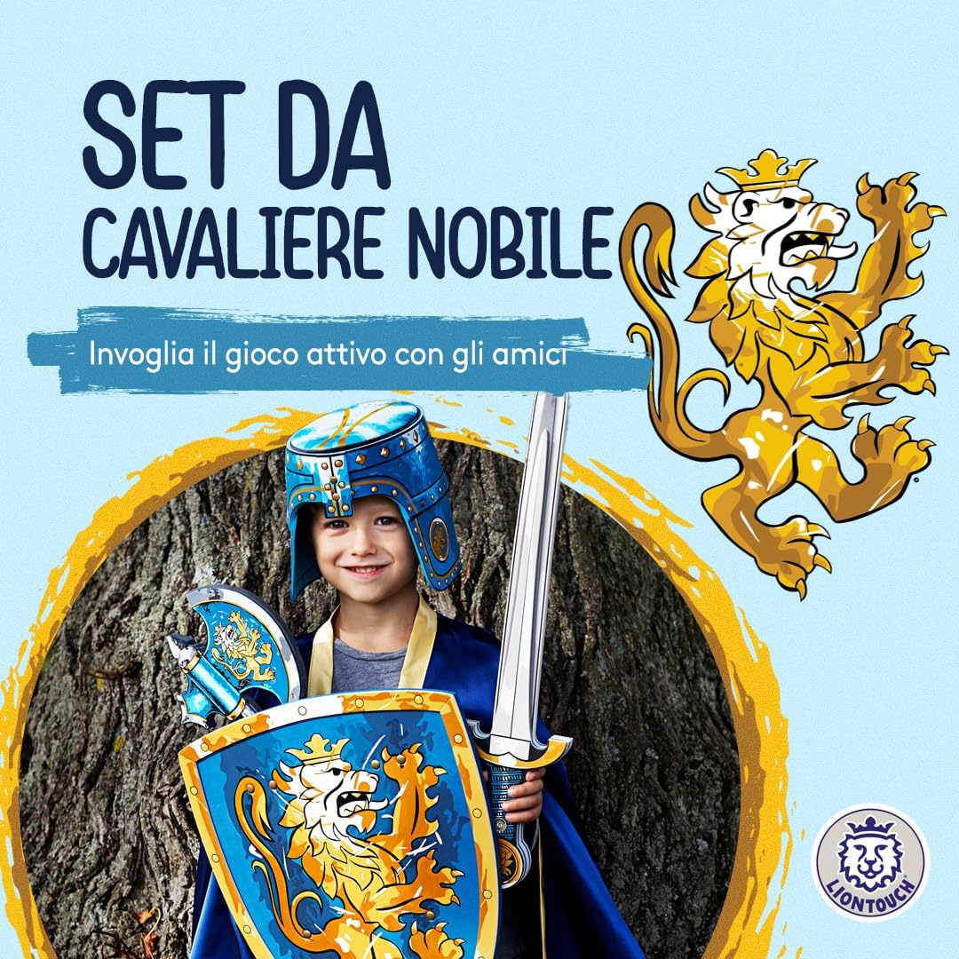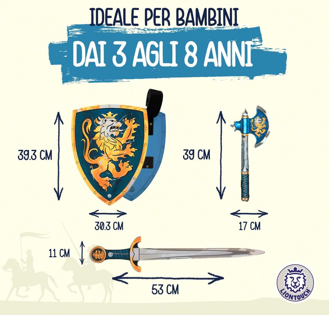GIOCO DI RUOLO per bambini dai 3 agli 8 anni. Incarna il Nobile Cavaliere, il protettore del re, e impegnati in nobili missioni. Ideale per compleanni, regali di Natale, o per vestirsi per Halloween e Carnevale LA SPADA, LO SCUDO E L'ASCIA sono realizzati in schiuma morbida e flessibile che assicura un cosplay sicuro con dettagliate decorazioni a tema Nobile Cavaliere con il Leone Dorato come motivo. Preparati a sconfiggere i draghi e a partire per missioni per salvare il Regno dal male SPEDITO IN UNA SCATOLA REGALO pronta per essere consegnata e garantire una piacevole esperienza di unboxing - contiene anche un piccolo catalogo dell'universo Liontouch. Ideale per ogni occasione festiva e con accessori disponibili TESTATO PER LA SICUREZZA in conformità con gli standard europei e americani e completamente flessibile, sicuro e stabile grazie alla qualità della schiuma e senza uso di bastoni all'interno. Completamente sicuro e senza materiali tossici GIOCATTOLI DA CAVALIERE MEDIEVALI progettati in Danimarca per bambini con attenzione ai dettagli e alla qualità mirata a ispirare i bambini a giocare attivamente usando solo la loro immaginazione. Liontouch incoraggia il movimento fisico e offre al bambino un divertente tempo senza schermo