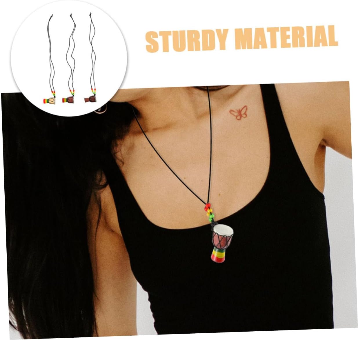 Fatto a mano: ogni ciondolo a tamburo è accuratamente realizzato a mano e mostra il fascino unico della cultura africana, gioielli alla moda per donne, collana di percussioni africane Compatto e carino: la mini collana con ciondolo a tamburo africano e tamburo a mano è progettata per essere compatta e carina, ideale da indossare tutti i giorni, una collana con ciondolo in stile e una collana di tendenza per le donne Unico: ideale come regalo per amici e parenti per mostrare la tua cura e il tuo gusto speciale, ciondolo musicale, collana Unico: unico per i tuoi cari, che riflette il tuo gusto e la tua attenzione distintivi, collane con tamburo a mano, gioielli africani Legno di qualità: il ciondolo è realizzato in legno di qualità e mantiene la sua qualità a lungo. Gioielli bohémien, tamburo djembe