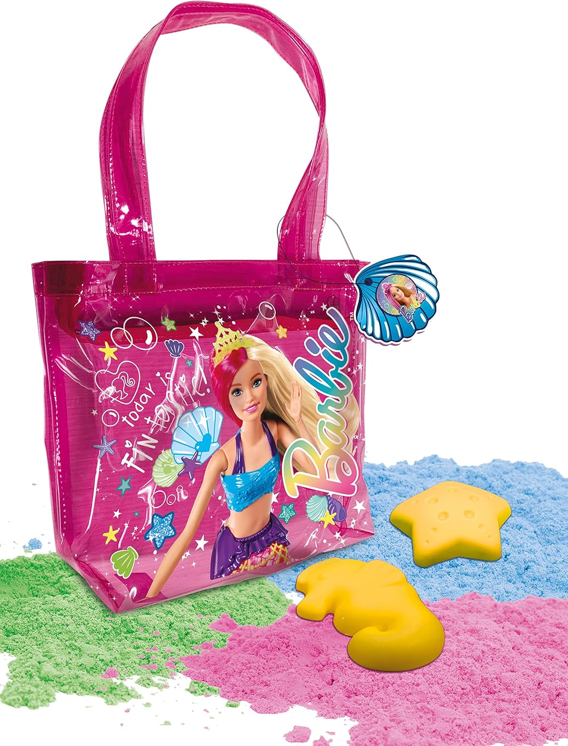 La colorata summer bag di Barbie con la sabbia glitter Con charm di Barbie - Con sabbia glitter - Con una ottima immagine di Barbie - 500 g di sabbia - Da 3 anni in su Contenuto: summer bag, 500 g di sabbia, 2 formine Percezione e psicomotricità - Coordinazione occhio mano - Manualità fine - Creatività - Curiosità e capacità di osservazione