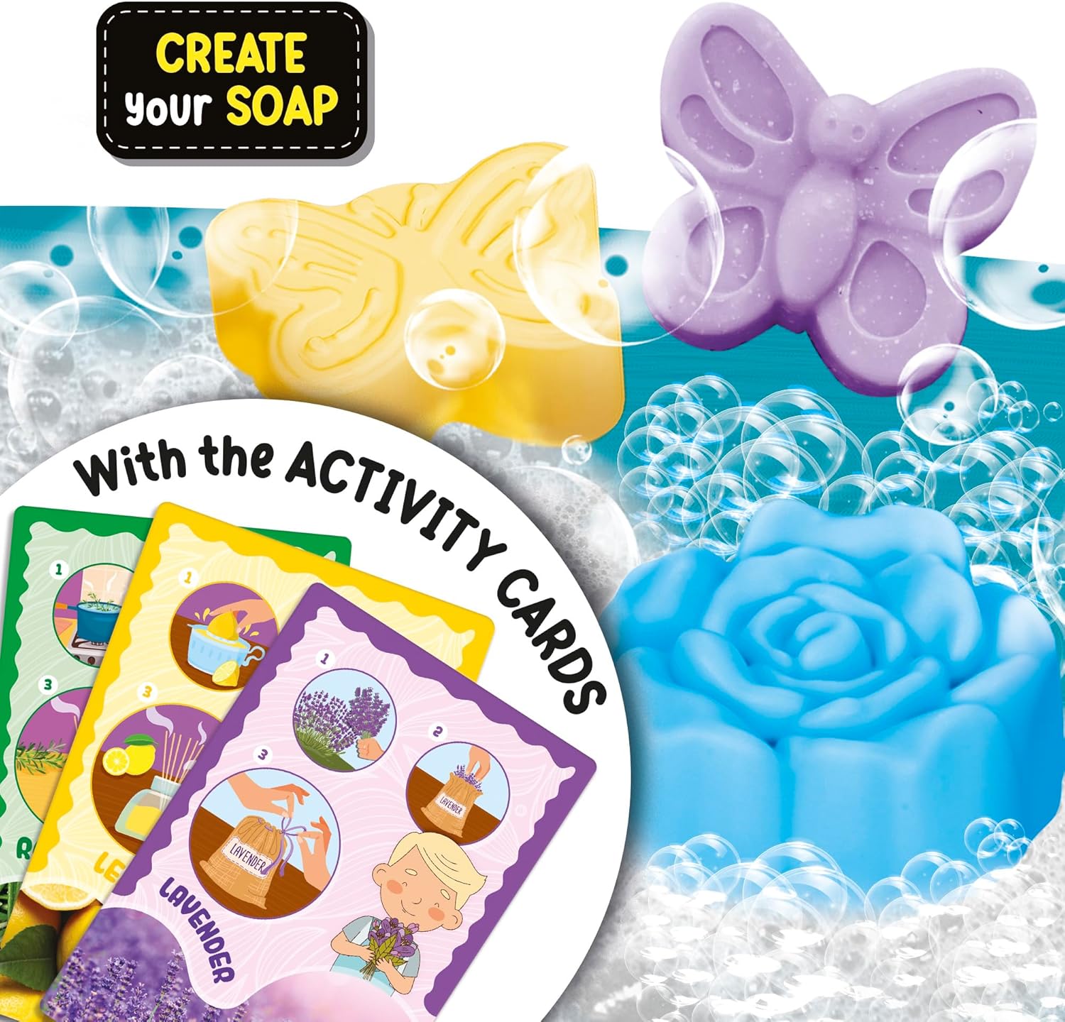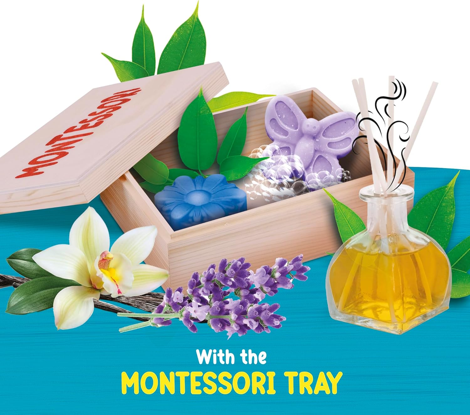 Con la pasta per creare il sapone e il diffusore di aromi Sapone fai da te, diffusore di aroma con essenze profumate, scatola in legno Pasta per sapone - 3 essenze profumate - dissusore con stick in legno - Istruzioni Capacità sensoriali - Coordinazione occhio-mano - Sviluppo della creatività - Autonomia