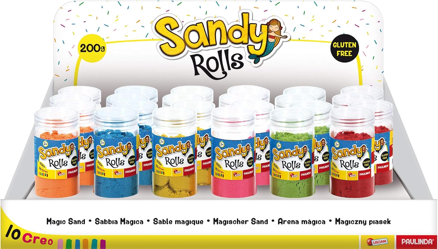 Manipolazione creativa della sabbia Stimola la creatività: 200 grammi di sabbia colorata 200 g di sabbia magica colorata, cilindro in plastica Creatività, scoperta dei materiali, sviluppo sensoriale tattile, immaginazione e fantasia