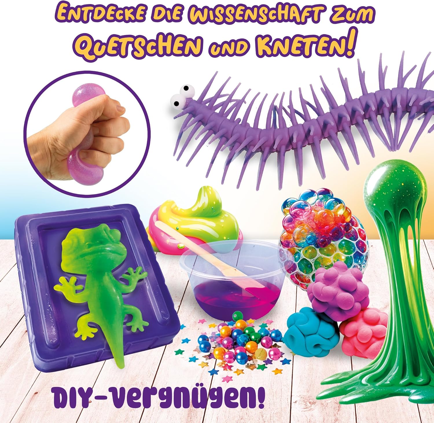 Fai da te il cambiamento di colore: i bambini creano un camaleonte elastico che cambia colore a seconda della temperatura – promuove la comprensione scientifica, la curiosità e la percezione sensoriale. Set di effetti per bambini a partire dai 7 anni: mescolando colla speciale e pigmento termico si crea un emozionante giocattolo di reazione – basta versare nello stampo, lasciarlo indurire e osservare come cambia colore. CONTENUTO PER L'ESPERIMENTO: include colla Squish A e B, ciotola, spatola, pigmento cambiacolore, forma camaleonte, pellicola adesiva su entrambi i lati e manuale illustrato – introduzione a misura di bambino alla chimica grazie alla pratica applicazione. Stimola la motorizzazione e la concentrazione: durante l'irrigazione, l'agitazione e l'osservazione, i bambini allenano le abilità motorie e la concentrazione, sostenendo giocosamente lo sviluppo del pensiero logico e del lavoro indipendente. Giocattolo creativo con effetto di apprendimento: il camaleonte finito è adatto per premere, collezionare o regalare, un gioco di ispirazione educativa per la promozione precoce nel campo della scienza naturale e dell'esperienza sensoriale.