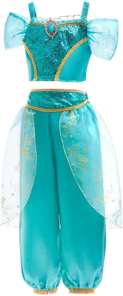 Lito Angels Costume Principessa Jasmine per Bambina Vestito Set Arabo (con Accessori) Abito per Danza Travestimento Carnevale Halloween Feste a Tema Mille e una Notte 2-14 Anni