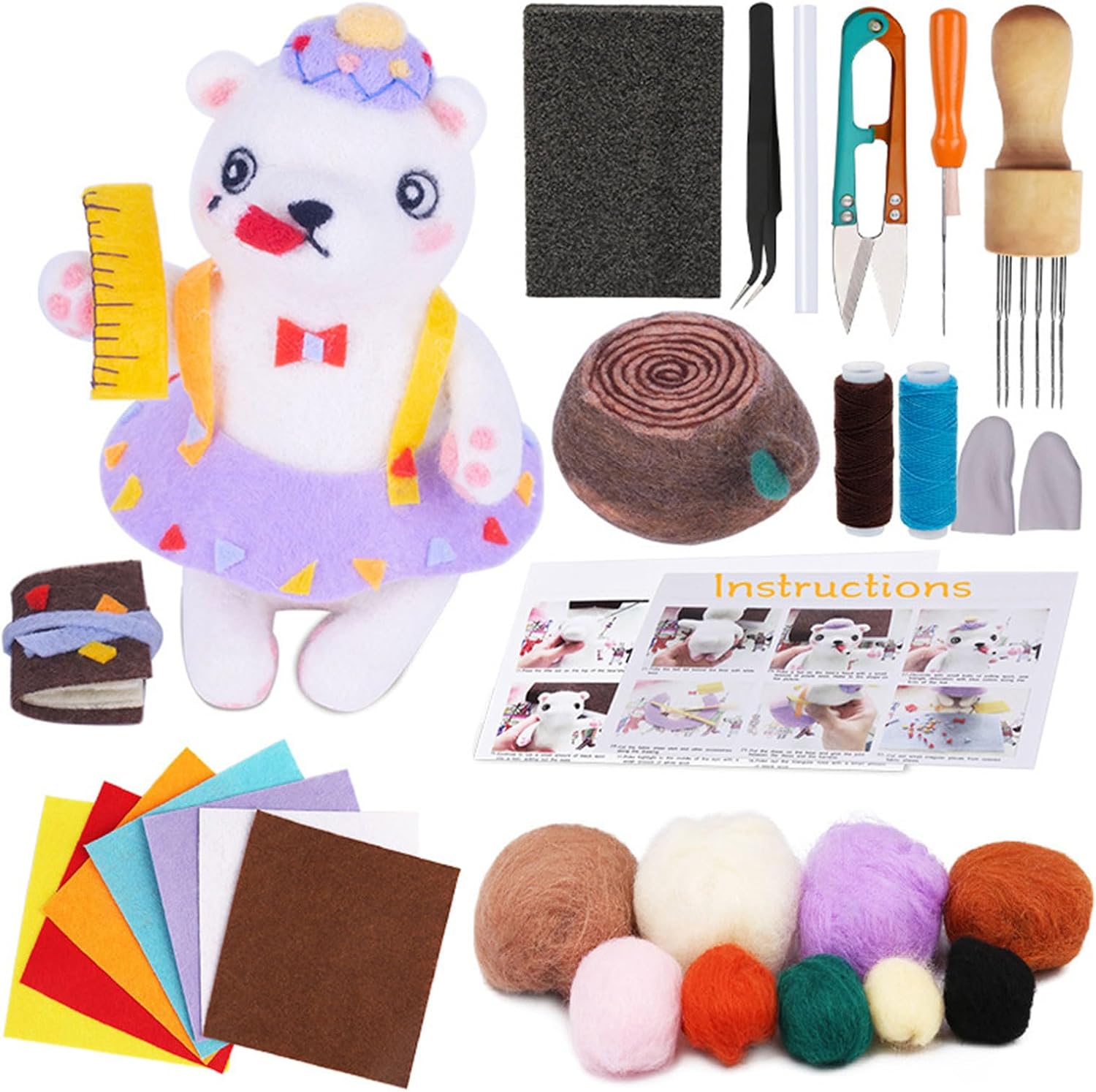 Realizzato in lana, questo set di infeltrimento ad ago con orso animale offre una consistenza morbida che è facile da modellare, garantendo che la tua creazione sia bella e sicura. Le istruzioni passo passo sono semplici e facili da seguire con le immagini per guidarti. Ideale per giocattoli in feltro ad ago, decorazione per la casa, esposizione dell'ufficio, regalo per festival o come parte di progetti di officina artigianale, queste creazioni in feltro di lana aggiungono un tocco di fascino fatto a mano a qualsiasi ambiente. Scopri il divertimento dell'infeltrimento della lana con le nostre forniture per infeltrimento ad ago Little Bear, viene fornito con feltro di lana di colori assortiti, ago per infeltrimento e manico in legno per una piacevole lavorazione artigianale Molto adatto per gli appassionati di artigianato, attività genitore, figlio, principianti e adulti che cercano sollievo dallo stress, questo set di infeltrimento per orsi di lana animale si rivolge a vari utenti che cercano di esplorare il loro lato creativo. Libera la tua creatività con questo set di feltro di lana, progettato per ispirare e fornire un viaggio di artigianato gratificante, rendendolo un'eccellente aggiunta alla tua collezione di forniture per infeltrimento ad ago.