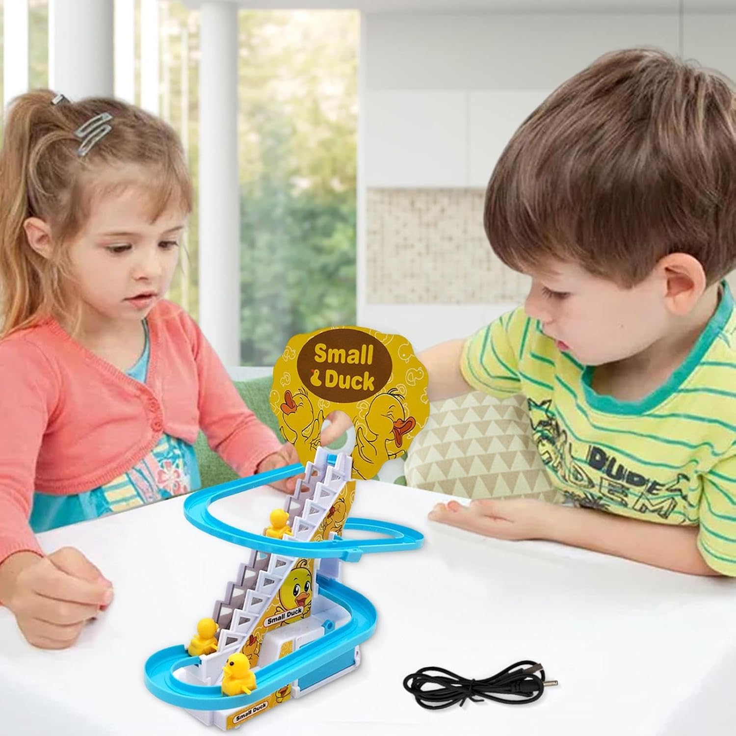 di gioco sicuro: il giocattolo da arrampicata per piccole anatre è realizzato con materiali ABS di alta qualità che sono durevoli e non facili da rompere. I tuoi bambini potranno divertirsi giocando con questo giocattolo senza preoccuparsi della sicurezza. Divertimento automatico: questo giocattolo sulle montagne russe con anatre è un giocattolo divertente e interattivo per i bambini. È dotato di piccole anatre che salgono automaticamente le scale al ritmo della musica, poi si inseguono quando scivolano giù. Le anatre dondolano su e giù mentre si muovono. Stimolazione mentale: potenzia le capacità cognitive del tuo bambino con il nostro creativo giocattolo da arrampicata Small Ducks. Assemblalo insieme ai tuoi figli e aiutali a sviluppare le loro capacità di pensiero logico e di coordinazione mentre si godono una fantastica esperienza di legame con loro. Ore di intrattenimento: preparati a far sì che il tuo bambino rimanga incantato da questo giocattolo da arrampicata per anatre. Con musica accattivante e luci colorate, il tuo bambino potrà trascorrere ore di divertimento guardando la piccola papera le scale e scivolare giù ancora e ancora. Regalo perfetto per i bambini: questo Natale, regala ai tuoi piccoli un giocattolo divertente ed educativo: una piccola papera che sale le scale. Adatto per compleanni, Pasqua, Capodanno, Festa dei bambini, Ringraziamento e altro ancora.