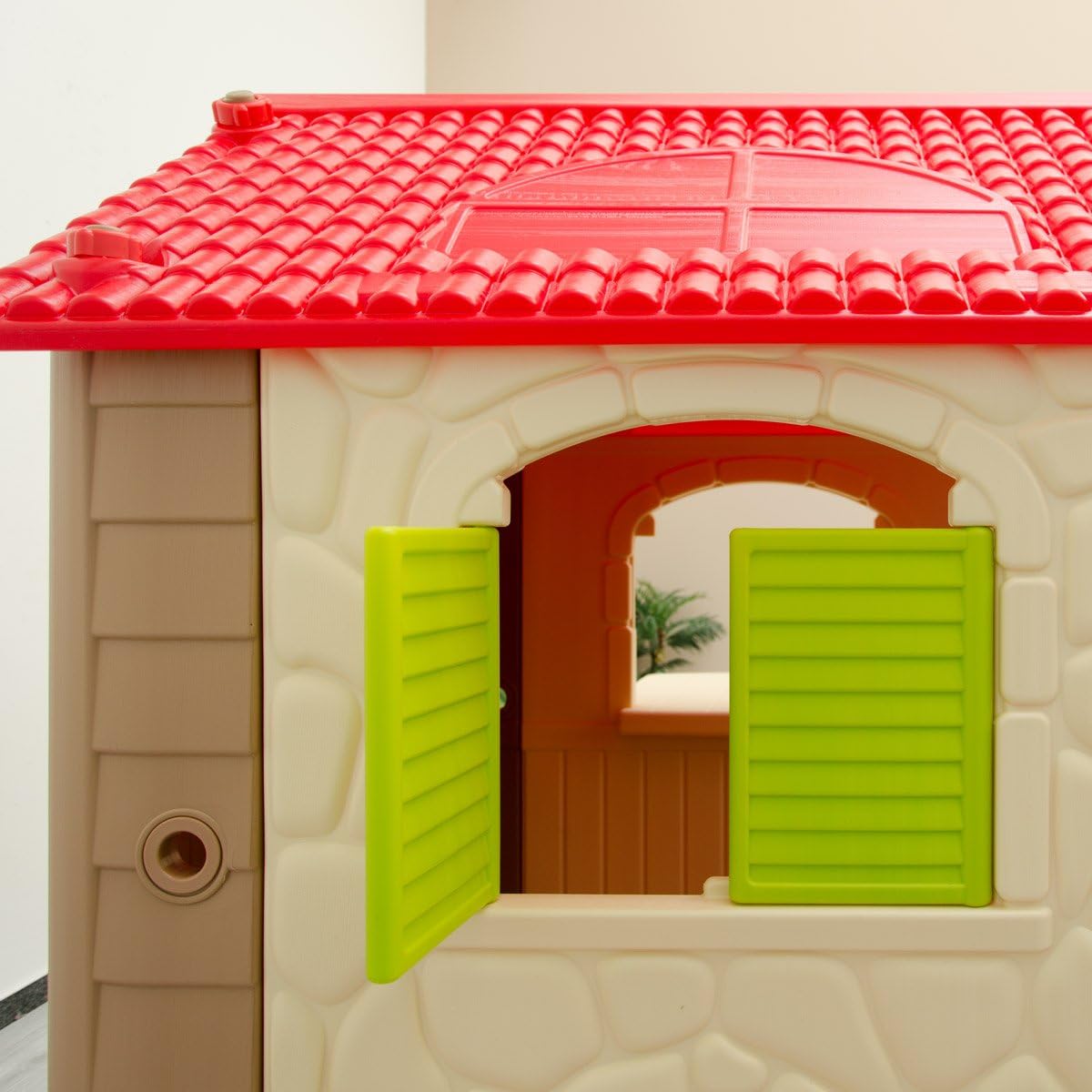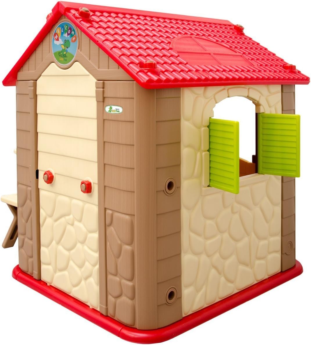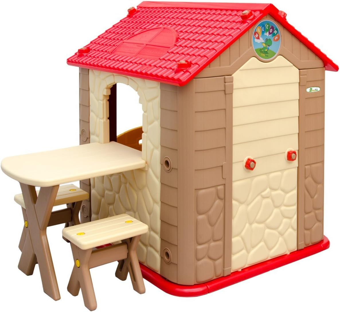 INCLUSI ACCESSORI: questa graziosa casa con il suo tavolo da picnic e le due panchine si trasformerà nel luogo preferito in cui i vostri figli potranno giocare e liberare la loro immaginazione. I colori neutri sono adatti ai bambini e alle bambine PER INTERNI & ESTERNI: la casetta è realizzata in plastica testata di alta qualità, resistente alle intemperie, può essere lasciata fuori per giorni. Facile da pulire con un panno umido ALTA QUALITÀ: stabile, i bordi e gli angoli arrotondati sono sicuri anche per i più piccoli. Dimensione totale: ca. 104x95x118cm; Superficie interna: ca. 88x76cm; Tavolo: ca. 58x46x50cm; Sgabello: ca. 30x20x27cm; Peso sostenuto: max. 30kg INTERATTIVA: la casa offre spazio per 2-3 bambini. Il tavolino può essere installato sia all'interno che all'esterno. Le finestre e la porta possono essere aperte / chiuse. Gli accessori integrati alla parete garantiscono il massimo divertimento VELOCE DA ASSEMBLARE: non sono necessari utensili particolari, le varie parti che la compongono si incastrano l'una dentro l'altra e devono essere fissate con i grandi bulloni inclusi nella consegna