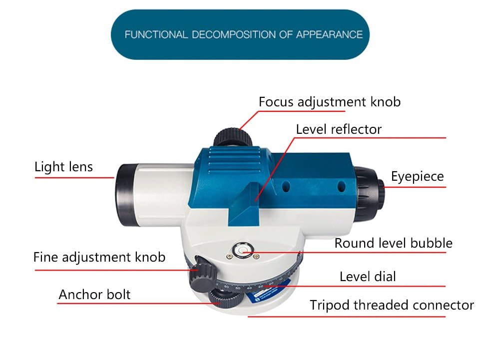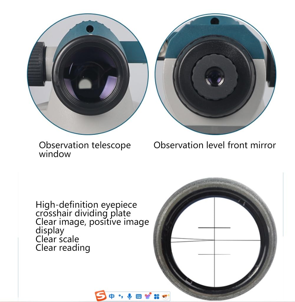 【Ingrandimento 32X e ampia apertura di 36 mm】Il livello ottico automatico offre immagini nitide con ingrandimento del telescopio 32X e un obiettivo da 36 mm, garantendo misurazioni accurate di altezza/distanza/angolo anche in condizioni di scarsa illuminazione. Raggiunge una deviazione standard di 1,0 mm for 1 km (doppia corsa) e una distanza di lavoro di 120 m for una precisione di livello professionale. 【Compensatore di smorzamento magnetico a X e blocco di trasporto】: Dotata di un avanzato compensatore di smorzamento magnetico con sospensione a filo a X, questa livella riduce al minimo le interferenze da vibrazioni e garantisce misurazioni stabili. Il blocco di trasporto protegge i componenti interni durante il trasporto, migliorandone la durata. 【Installazione rapida e design impermeabile IP54】 È dotato di una fiala a bolla circolare, di una filettatura for treppiede da 5/8" e di un robusto alloggiamento con grado di protezione IP54 for un'eccellente resistenza a polvere e acqua. La distanza di messa a fuoco minima di 0,3 m consente un allineamento rapido, ideale for ambienti esterni difficili. 【Ampie applicazioni e kit resistente】Perfetto for ingegneria edile, rilievi minerari e monitoraggio dei cedimenti. Include un filo a piombo, un perno di regolazione e una custodia rigida for un facile trasporto. Il cerchio graduato a 360° supporta misurazioni angolari flessibili. 【Compensatore autolivellante con blocco】Il livello ottico è dotato di un compensatore magnetico autolivellante con blocco di trasporto. Il dispositivo di blocco protegge il compensatore durante il trasporto e ne prolunga la durata. Inoltre, gli utenti possono verificare se la molla di sospensione del compensatore è danneggiata dalle vibrazioni dopo il trasporto e verificarne lo stato di funzionamento.