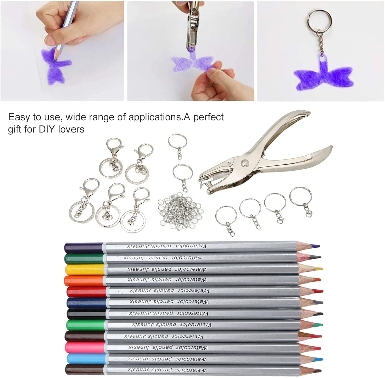 [Strumenti completi] Ottieni 12 matite colorate, 1 foro, 5 portachiavi, 10 anelli chiave e 100 anelli aperti per infinite possibilità di crafting. [Migliora creatività] Incoraggia i bambini a creare, imparare ed esplorare mentre promuovono i momenti di legame tra genitori e bambini. [Facile da usare] Basta disegnare, colore, tagliare e assemblare per creare portachiavi unici e personalizzati senza sforzo. [Dono] Ideale per gli appassionati di fai -da -te per creare speciali regali fatti a mano per la famiglia e gli amici, diffondendo gioia e creatività. [Ampia applicazione] Set versatile per la realizzazione di catene chiave, gioielli, pulsanti, tiri con cerniera, segnalibri e altro ancora, sbloccare un potenziale di crafting infinito.