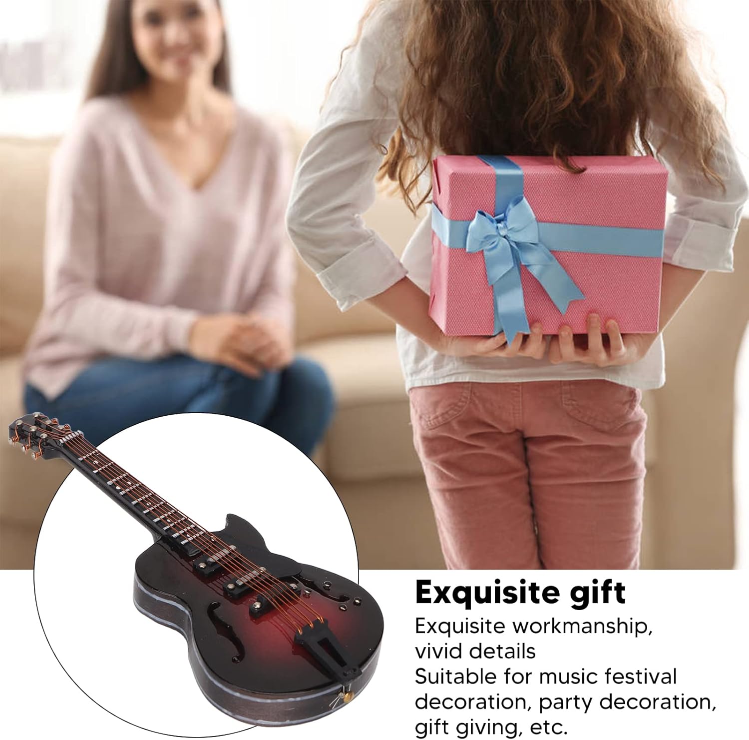 Multiuso: le spille per strumenti musicali sono adatte per la decorazione di festival musicali, decorazioni per feste e regali. Regali squisiti: la spilla musicale in miniatura può essere regalata a familiari e amici come regali di festa o regali di compleanno e lo adoreranno. Aspetto della chitarra: le spille per strumenti musicali adottano il design della chitarra, che è molto alla moda, bella e pratica. Esecuzione squisita: le spille da bavero per strumenti musicali in miniatura da donna adottano una lavorazione squisita con dettagli realistici. Materiale: la spilla da bavero alla moda è realizzata in legno, dotata di fibbia di sicurezza, facile da usare, confezione e l'interno è in flanella per evitare sfregamenti.
