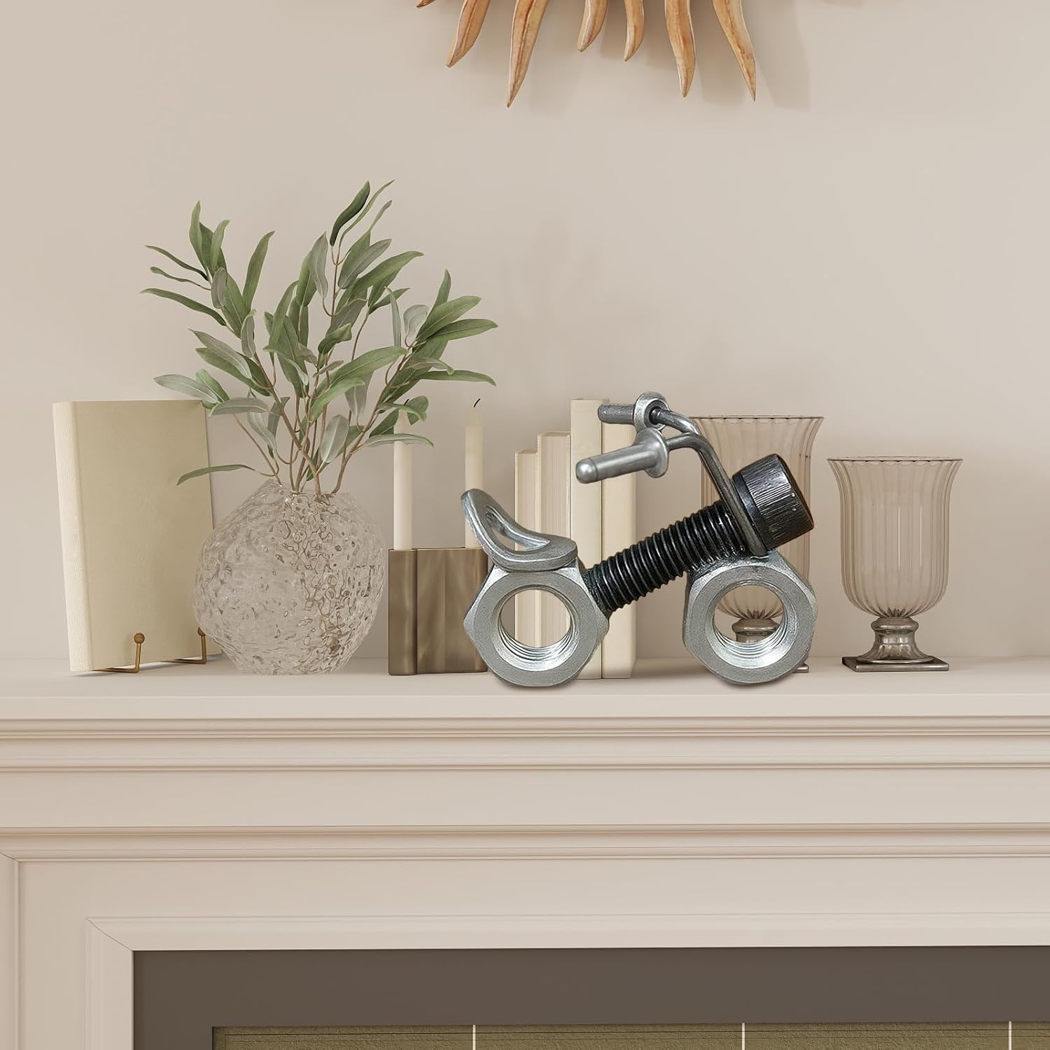 Pezzo da collezione antiscolorimento: Realizzato in modo esperto per prevenire lo scolorimento e resistere ai , questo modellino da collezione offre valore duraturo come articolo decorativo da esposizione con colori sempre vivaci Scelta Regalo Ideale: Ideale per genitori e bambini, questo modellino di moto è un regalo eccellente per motociclisti e appassionati di meccanica che amano i dettagli precisi e il design nostalgico ispiratore Soluzione di Senza Sforzo: Le dimensioni ridotte del modellino di moto lo rendono parsimonioso spazio e semplice da conservare, esibire o portare con sé, garantendo una mobilità impeccabile senza compromettere estetica o funzionalità Lavorazione ecologica: Caratterizzato da assemblaggio meccanico e riutilizzo di componenti come , dadi, bulloni e chiavi inglesi riciclati, questo modellino unisce design ecologico e valore artistico, per collezionisti Esposizione versatile: Ideale per scrivania o libreria, questo modellino di moto migliora gli spazi vivibili con il suo design stilizzato, rendendolo una scelta decorativa di gusto che si abborda senza sforzo con vari stili di interni contemporanei