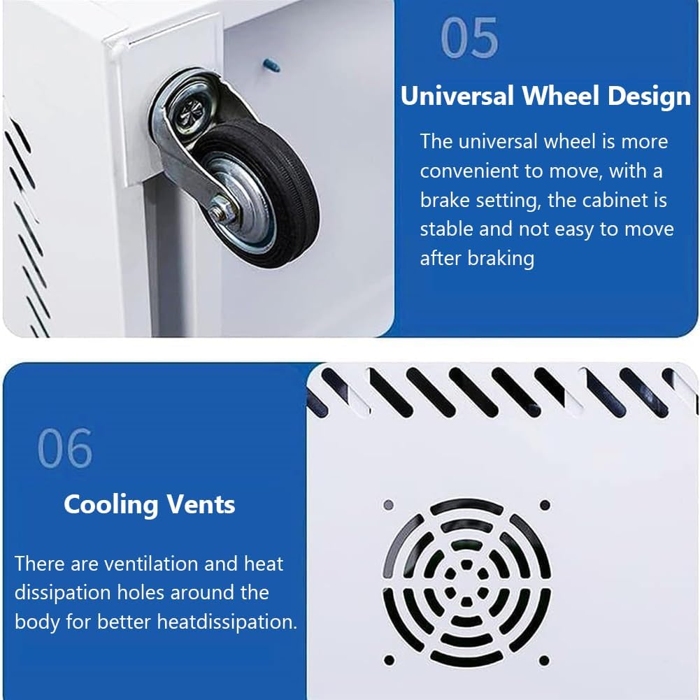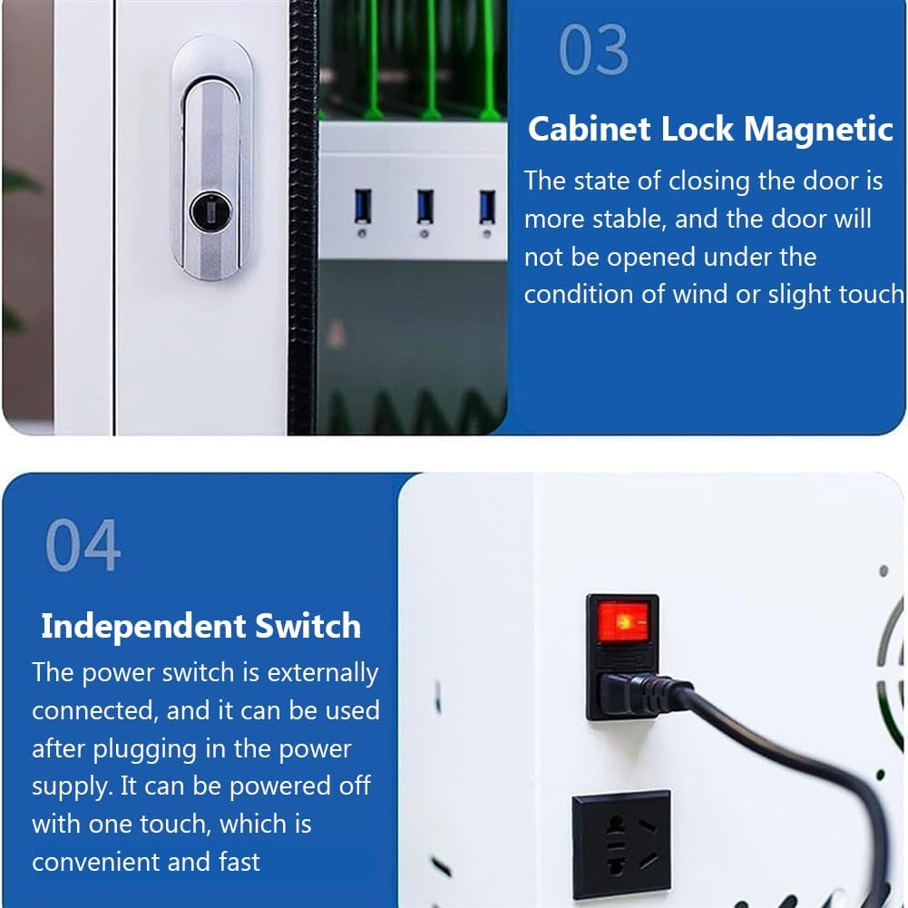 Mobiletto portatelefono in classe: questo mobiletto portatelefono essenziale per le scuole superiori e medie è perfetto per riporre i telefoni degli studenti durante le lezioni. Permette agli studenti di concentrarsi sull'apprendimento, evitare distrazioni digitali e porre fine all'abitudine di usare il telefono durante le lezioni, creando un'aula più efficiente. Caratteristiche di sicurezza: il nostro mobiletto portatelefono in classe è dotato di serratura con chiave e robuste maniglie per mantenere il telefono sicuro e maneggevole. Le prese d'aria laterali prevengono un accumulo di calore interno potenzialmente pericoloso. Gestione cavi e caricabatterie: dite addio ai cavi disordinati! Il nostro carrello portacomputer con ruote è dotato di divisori per la gestione dei cavi e di un organizer per caricabatterie sul retro. Questo elimina il groviglio di cavi di ricarica e offre un'incredibile praticità. Design trasparente: il design trasparente del nostro mobiletto portatelefono facilita l'individuazione e l'identificazione dei dispositivi senza dover aprire ogni slot, risparmiando tempo e consentendo a tutti di distinguere facilmente e accedere rapidamente al proprio telefono. È anche molto facile da manutenere. Versatile: questo mobiletto portatelefono può essere utilizzato in scuole, fabbriche, campi di allenamento, sale conferenze, laboratori e altri luoghi in cui è necessario un unico spazio per riporre il telefono. Protegge i telefoni e migliora l'efficienza del lavoro, adattandosi a una varietà di tipi di telefono