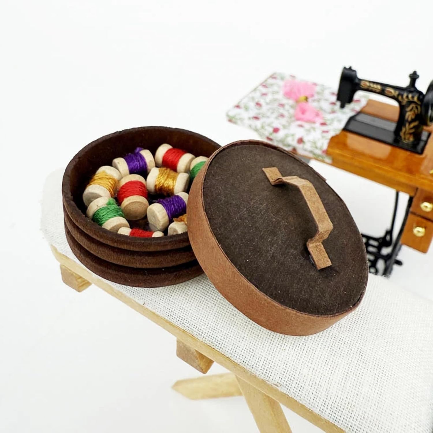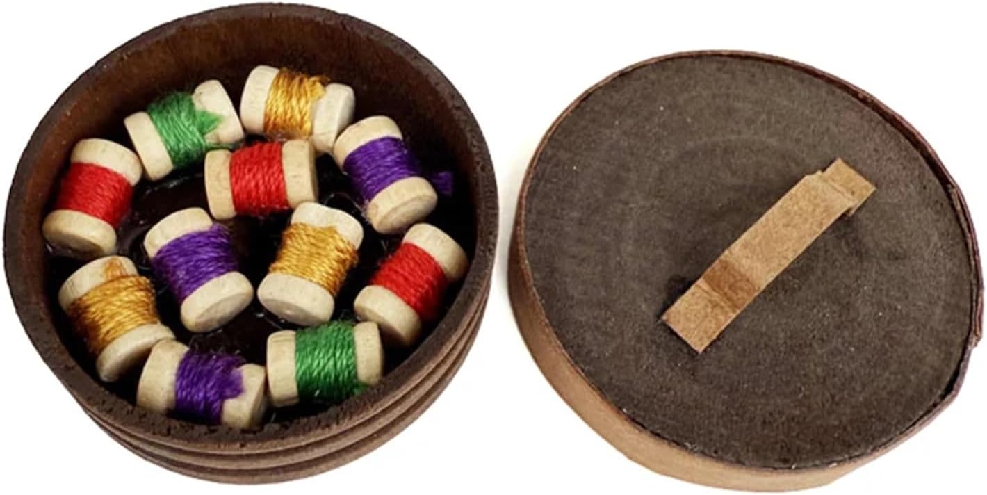 Artigianato realizzato in legno liscio con una forma rotonda retrò. Questa miniatura include fessure per aghi realistiche e scanalature per rocchetti di filo, catturando il fascino degli accessori da cucito antichi. Il design vintage si armonizza con vari decori delle case delle bambole, fornendo sia un fascino decorativo che uno spazio funzionale per piccoli accessori da cucito. Scatola da cucito rotonda vintage dettagliata delle case delle bambole 1/12, texture in legno e intricati dettagli in miniatura per un tocco nostalgico. Perfetto per le tolette delle case delle bambole o l'angolo artigianale. Fantastici accessori fotografici ideali per gli appassionati di case delle bambole, i collezionisti di miniature e gli hobbisti che cercano mobili vintage per migliorare la loro piccola scena domestica
