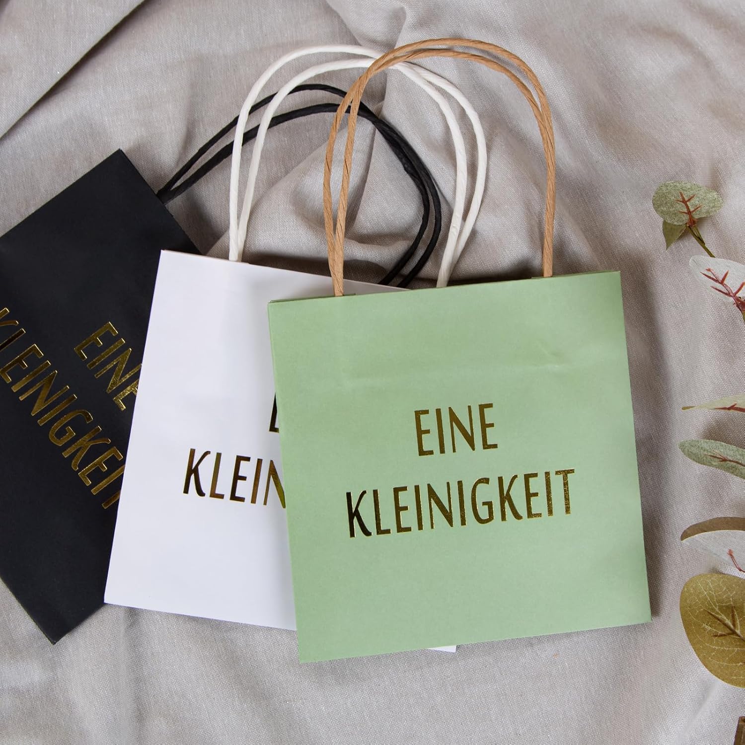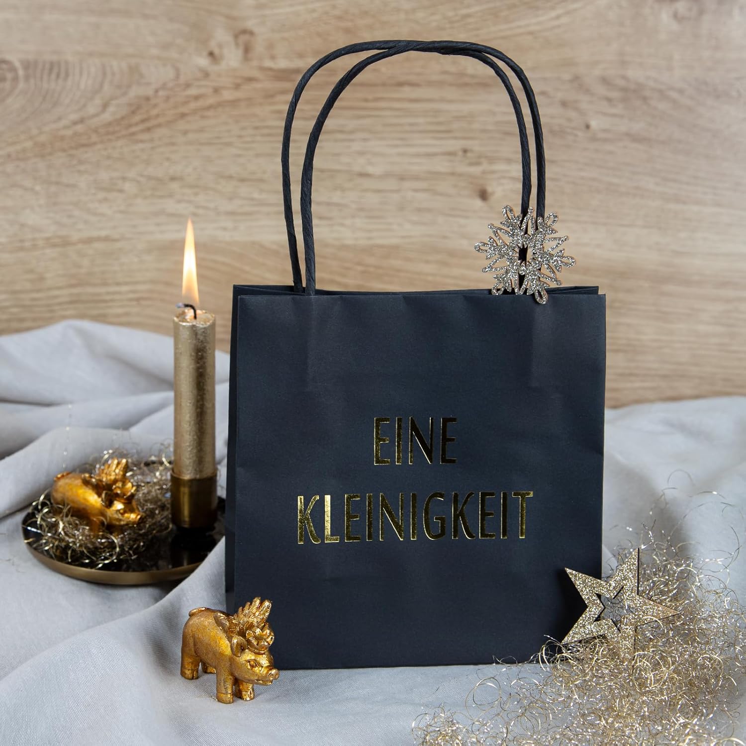 Quattro eleganti sacchetti di carta con maniglia per il trasporto e stampa dorata del testo: qualcosa in più. Una borsa per uomini, donne, clienti, amici, colleghi, dipendenti: una confezione elegante con un tocco di lusso. La borsa – misurata senza manico – ha una dimensione di 16 x 16 x 8 cm. Una confezione speciale per regali di Natale, regali di compleanno, clienti, dipendenti, colleghi, bambini e adulti. Perfetto da riempire con piccoli prodotti, profumi, lingerie, calzini e biancheria intima, oggetti decorativi, biscotti,... una confezione regalo riutilizzabile naturale che fa davvero la differenza. Abbiamo anche i sacchetti di carta in rosa. Ideale come borsa natalizia, borsa a sorpresa, borsa a sorpresa, borsa per il cliente. Oltre a queste borse da spesa abbiamo anche semplici borse di carta naturale nei colori marrone, bianco, rosso, blu, giallo, bianco e verde. Siamo specializzati nella confezione di regali: da noi troverete anche tante etichette regalo, piccoli omaggi e portafortuna per occasioni come matrimoni, cresime, battesimi, eventi aziendali, feste, compleanni, ... Con amore e cuore dalla piccola e velocissima casa editrice Logbuch di Ratisbona in Baviera. ❤️