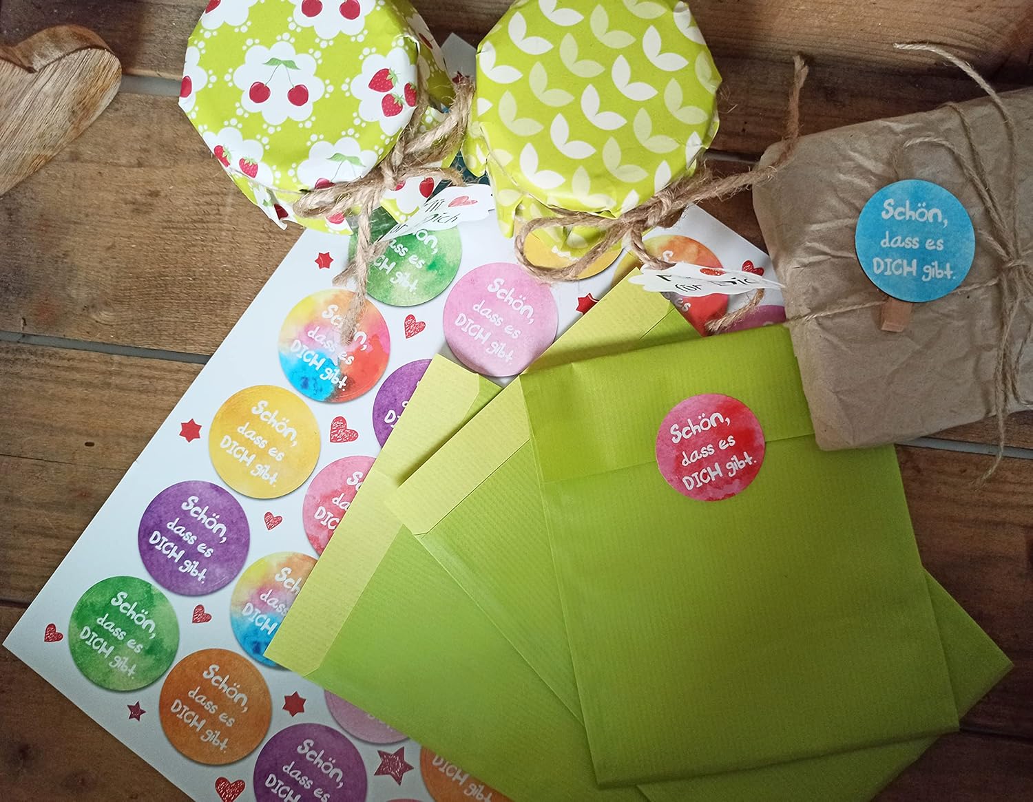 Dimensioni: 13 cm x 18 cm + linguetta 2 cm. Piccoli sacchetti verdi freschi fatti di carta kraft. Per confezionare piccole cose. Ma anche per buste per cartoline o per progettare e regalare voi stessi denaro. I sacchetti di carta vengono utilizzati per confezionare o conservare piccoli oggetti come caramelle, biscotti, dolciumi, gioielli, semi di fiori e bulbi di fiori, nonché altri semi. Molte persone li prendono anche per realizzare le stelle di Natale. Altri come sacchetti per compleanno, sacchetti per sorprese, sacchetti per feste per i compleanni dei bambini. Flix ci ha attaccato sopra alcuni adesivi e ci ha scritto sopra il nome. Completare. Da non dimenticare per realizzare calendari dell'Avvento fatti in casa da riempire. I piccoli regali vengono confezionati rapidamente. Sia per gli ospiti come confezione regalo, come piccoli regali per le feste o come omaggio per i clienti. Ideale per ricorrenze come Pasqua, Natale, compleanni, comunioni e matrimoni. 1a qualità di produzione tedesca. Da noi troverete un vasto assortimento di sacchetti piatti e di sacchetti con fondo in carta, nonché le etichette, gli adesivi e le fascette per sigillare abbinati. Con AMORE e CUORE dal piccolo editore di diari di bordo della Baviera.