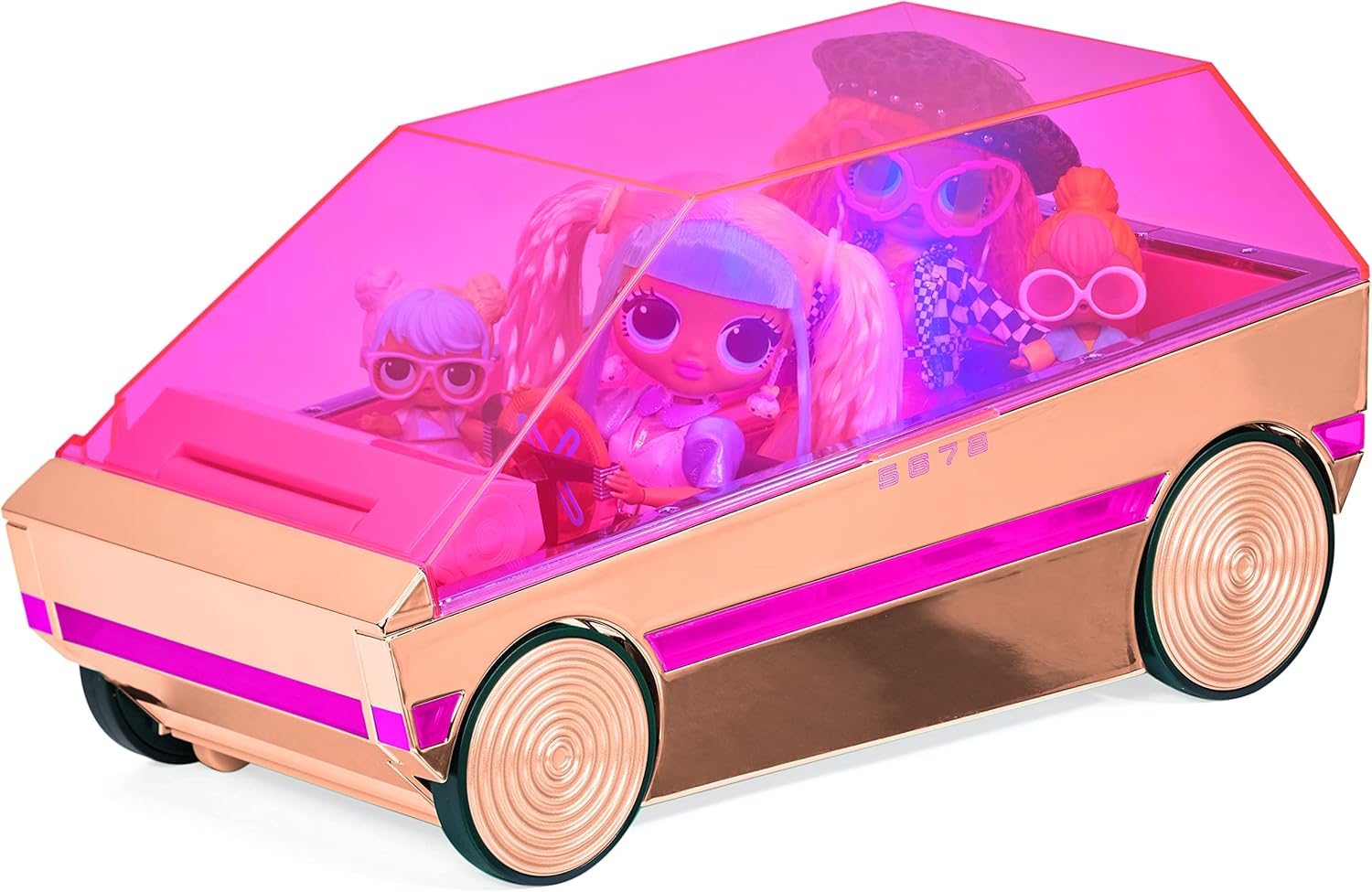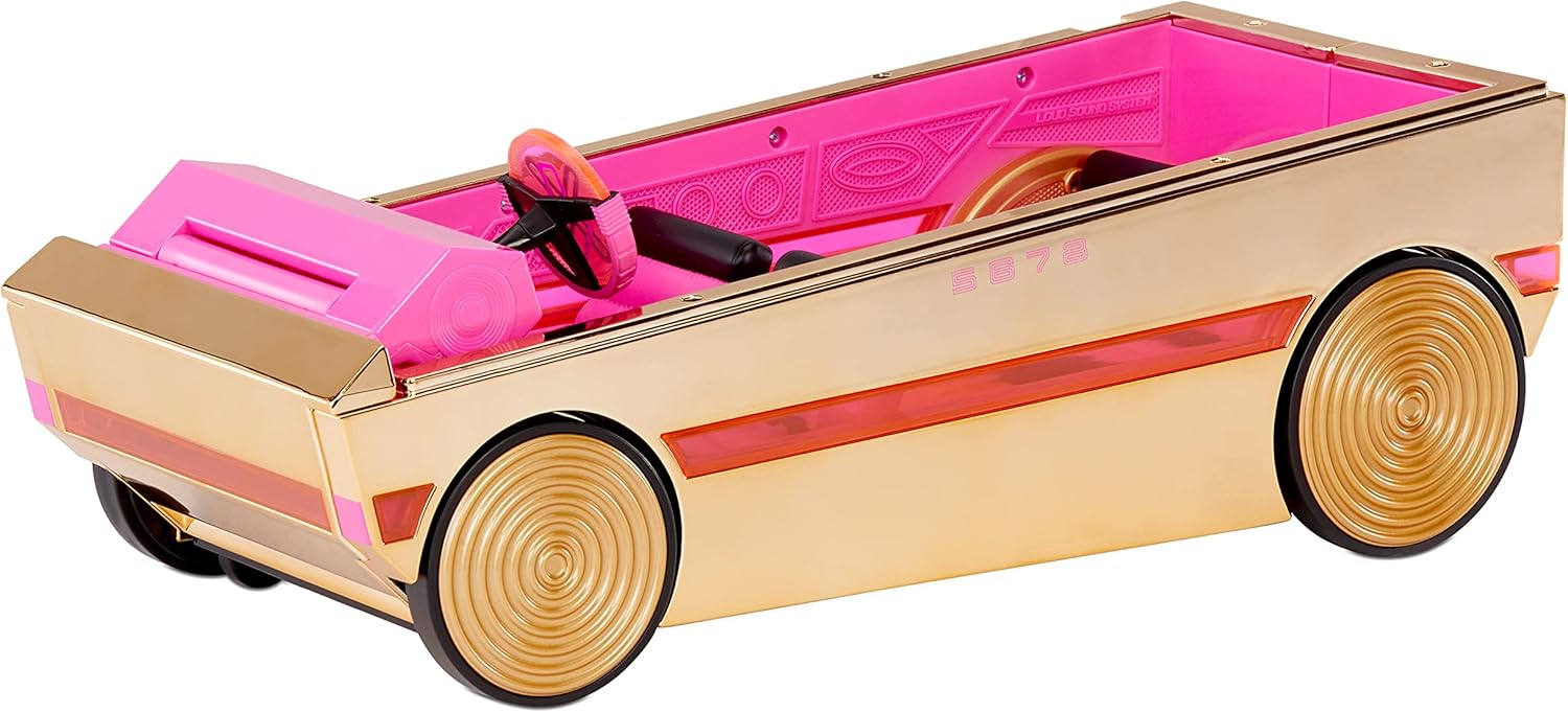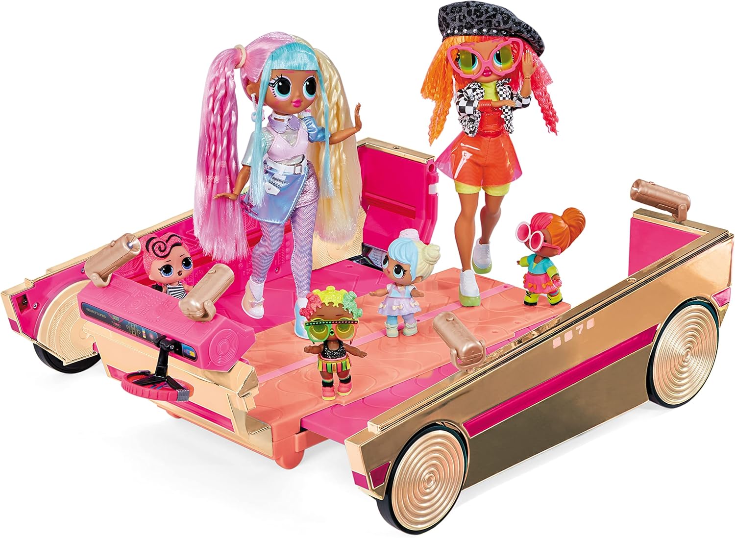 3 In 1: Questo Veicolo 3 In 1 Con Auto, Pista Da Ballo E Piscina Ti Offre La Migliore Esperienza Di Festa ADATTO A BAMBOLE DI TUTTE LE TAGLIE: fai viaggiare con stile le tue bambole LOL Surprise e le fashion doll OMG per partecipare alle feste e ai concerti più rumorosi in tutto il mondo. Questo Party Cruiser ha abbastanza spazio per contenere 4 fashion doll OMG FINITURA DI LUSSO: con il suo colore oro rosa e la finitura rosa, il Party Cruiser ha un look grintoso per ogni occasione. SORPRESE CON LUCE NERA: il Party Cruiser 3 in 1 include anche 4 torce con luce nera per sorprese luminose. SET DA GIOCO TRASFORMABILE: tira fuori la pista da ballo o rimuovi il tetto e riempilo per trasformarlo in una piscina. È ora di fare festa. SEDILI RIMOVIBILI: Party Cruiser 3 in 1 include sedili per 4 bambole. Inoltre, tutti i sedili sono rimovibili