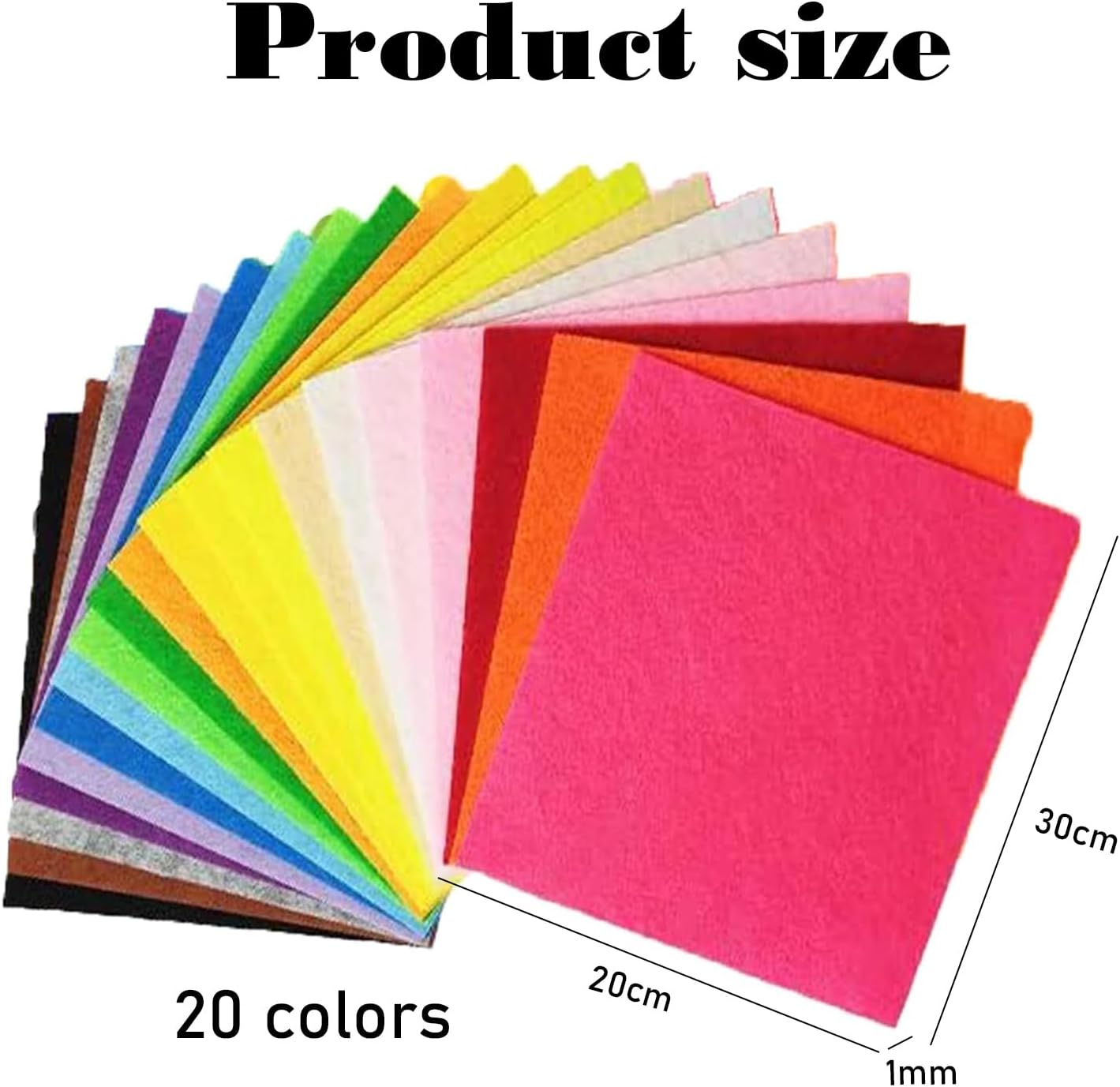 Ampio set di colori: 20 colori diversi in un pratico set. Contiene tutti i principali colori di base e tonalità moderne. Ideale per progetti creativi e lavori di bricolage di ogni tipo Dimensioni generose foglie: ogni foglio misura 20 x 30 cm. Offre spazio sufficiente per diversi progetti di bricolage. Consente di tagliare qualsiasi forma e dimensione senza restrizioni Molteplici applicazioni: perfetto per scrapbooking, patchwork e artigianato. Adatto per giochi di giardinaggio e progetti scolastici. Ideale per creare biglietti di auguri ed elementi decorativi Lavorazione semplice: il materiale non tessuto è facile da tagliare e modellare. Facile da incollare e cucire. Fibra resistente e antistrappo durante la lavorazione con diverse tecniche Pronto per l'uso: nessun tempo di preparazione necessario. I fogli sono utilizzabili immediatamente per progetti di bricolage. Qualità perfetta senza sfilacciature o irregolarità nel materiale