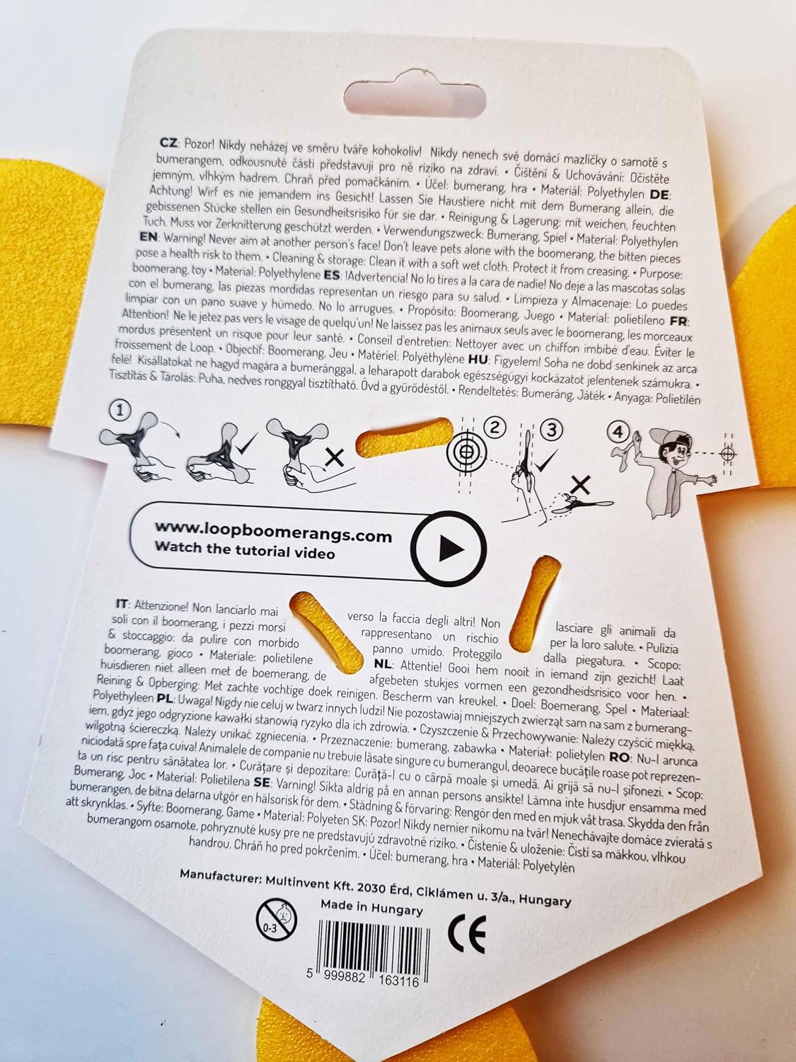 Boomerang soffice da interno in schiuma. 2-3 metri di volo. Inoffensivo e adatto anche ai più piccoli. Colore Azzurro.