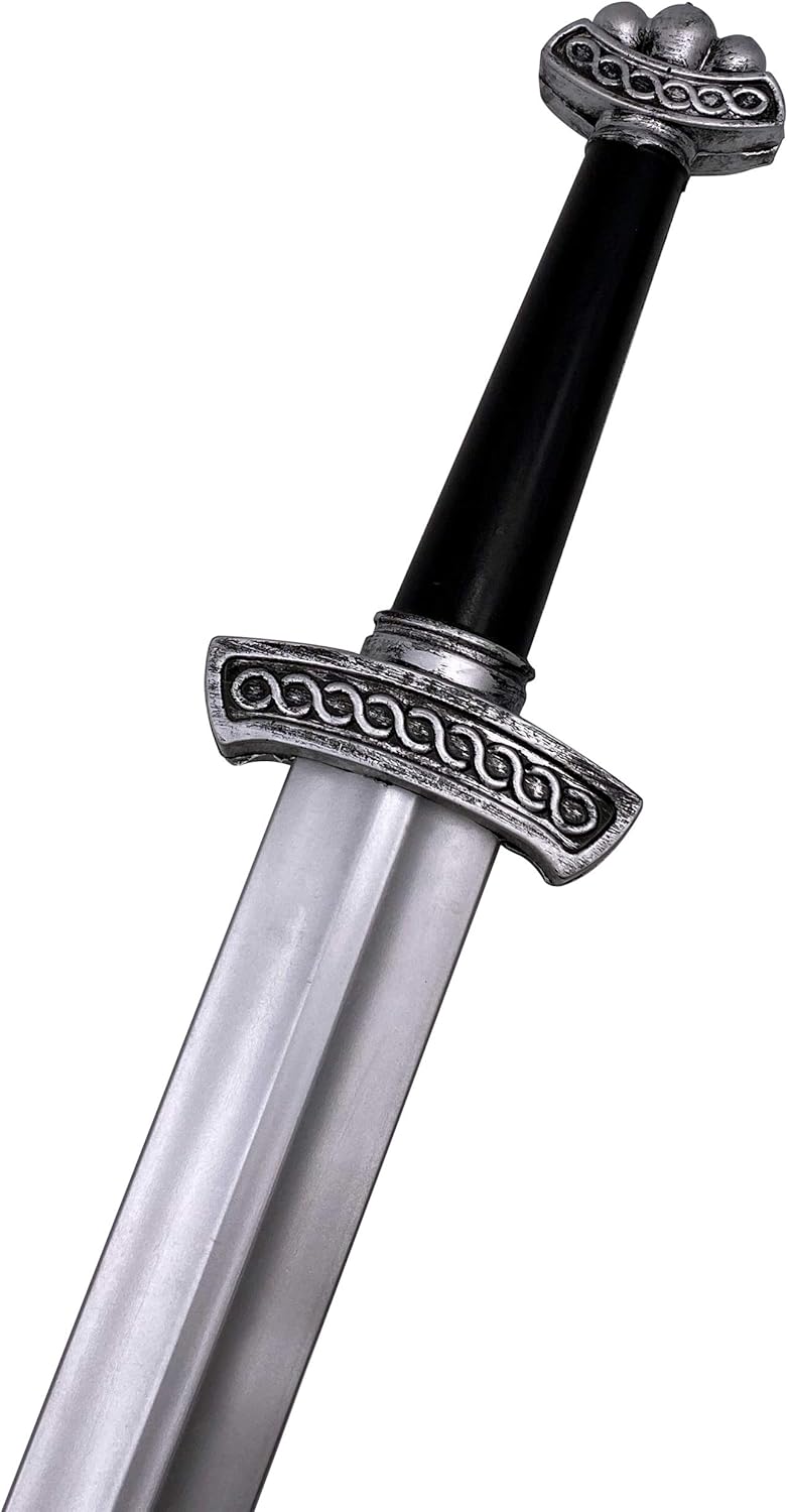 Design della spada vichinga ispirato agli stili storici medievali. La spada vichinga era uno degli strumenti offensivi più utili per un guerriero vichingo. Le spade vichinghe erano tipicamente destinate all'uso con una mano, con l'altra mano che reggeva uno scudo. Erano più che semplici armi da combattimento; una spada spesso indicava ricchezza e status. Spada in costume perfetta. Ideale per produzioni teatrali, feste di Halloween, feste in maschera, giochi di travestimenti e altro ancora. La spada sarebbe perfetta per le feste rinascimentali nella tua zona, alcune risse nel cortile tra amici, eventi LARP o rievocazioni storiche. Realizzato in schiuma PU di alta qualità con colore metallico realistico. A grandezza naturale per un vero uomo. Dimensioni (L x P x A): 104 x 10 x 3,6 cm. Ornamento unico. Il giocattolo con la spada porta un'attenzione straordinaria a casa e in ufficio. Posizionato in un angolo attirerà subito l'attenzione dei vostri ospiti.