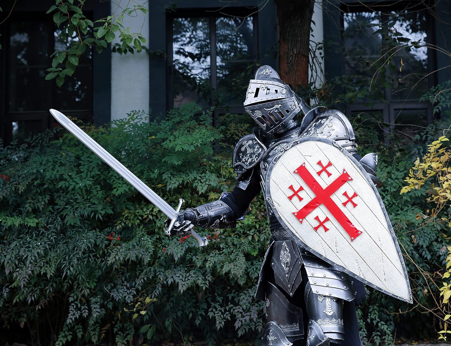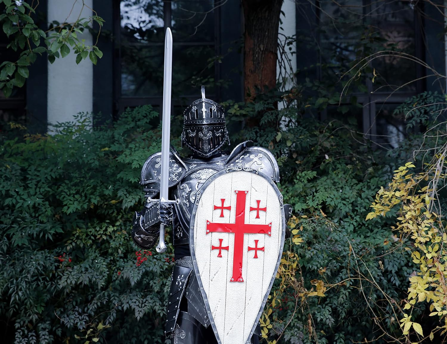 Design ispirato agli stili storici medievali. Le spade a due mani erano conosciute come spade da guerra nel primo Medioevo e utilizzate per distruggere lo scudo di un avversario, tagliare la posta e danneggiare i timoni. Erano chiamate grandi spade durante l'Alto Medioevo e il Rinascimento. Le lame tendevano ad essere leggermente più lunghe delle spade normali e in grado di danneggiare l'armatura a piastre complete al punto in cui i movimenti dell'avversario erano sostanzialmente compromessi. Full Size per un vero uomo. Dimensioni: 100 x 22 x 4,1 cm (lunghezza x larghezza x altezza). Non è un giocattolo fragile per armi. Realizzato in schiuma PU di alta qualità con vernice colorata dall'aspetto realistico in acciaio. Ornamento unico. Il pacchetto di giocattoli per armi porterà un focus impressionante a casa e ufficio. Posizionato in un angolo, attirerà immediatamente l'attenzione dei vostri ospiti. Ideale per produzioni teatrali, celebrazioni di Halloween, feste in costume, giochi di vestire e molto altro ancora. PS: questo link di vendita non include lo scudo nella foto. Puoi trovare questo scudo nel nostro negozio.