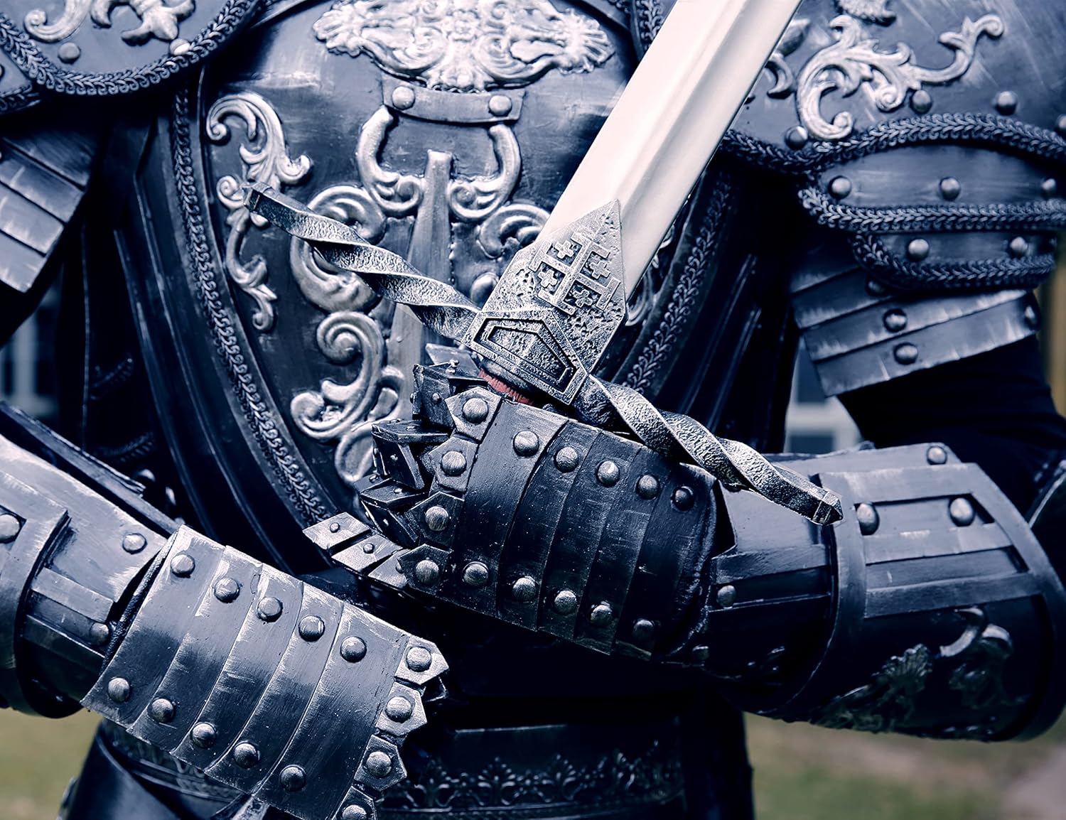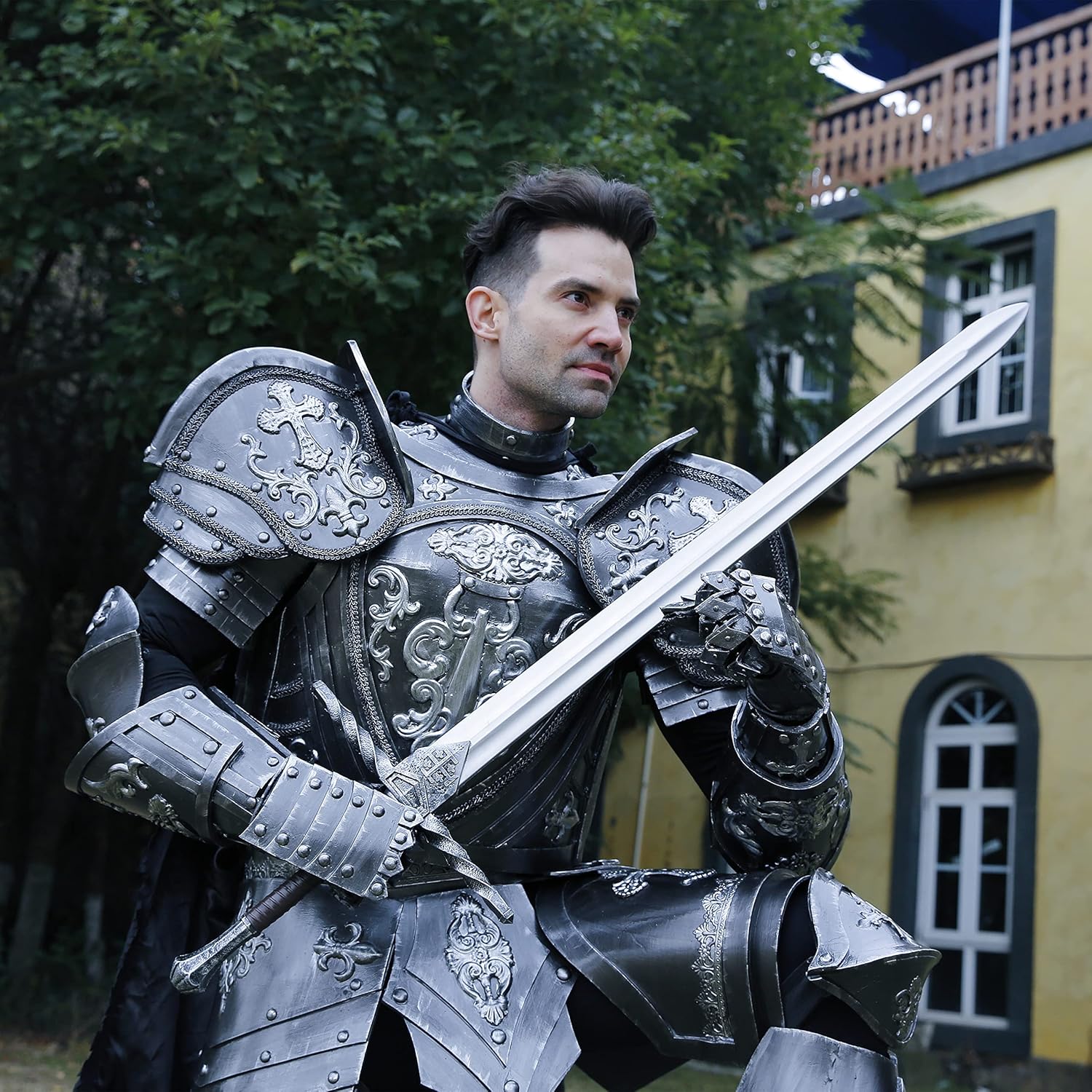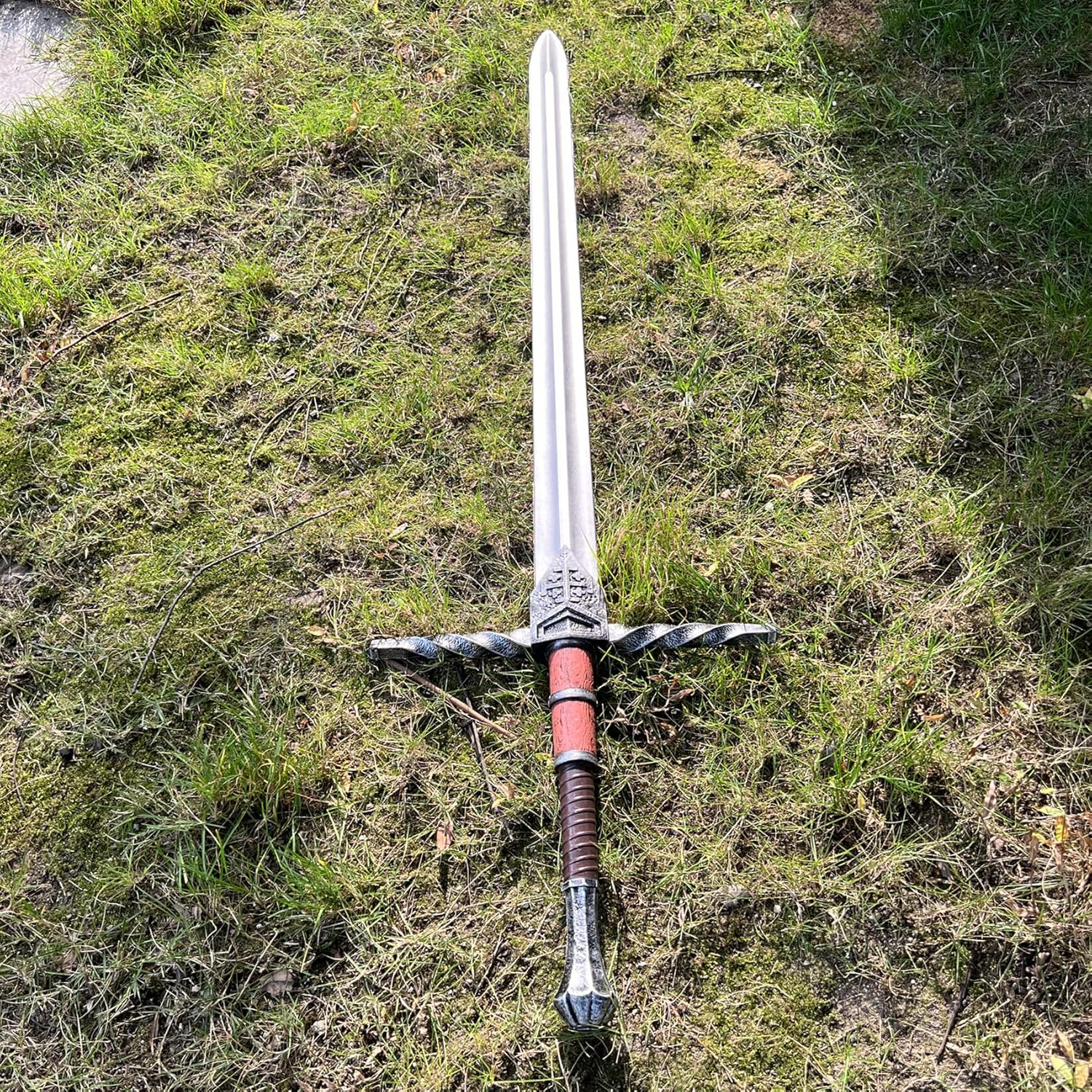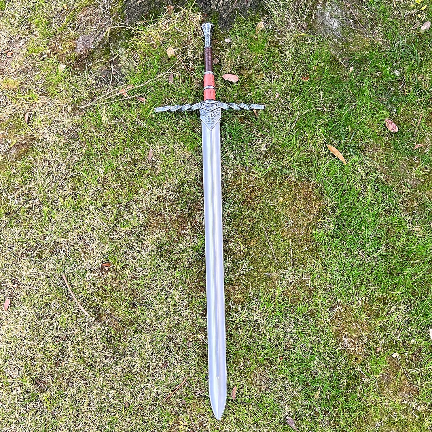 Immergiti nel mondo storico dei cavalieri con questa spada a due mani. Ispirata alle grandi spade della storia, è stata accuratamente riportata alla sua funzione e al suo utilizzo originali. Quest'arma veniva tipicamente impugnata con entrambe le mani, il che la distingue dalle spade più piccole con una sola mano. Il manico è lungo 33 cm e riporta lo stemma del Regno di Gerusalemme, rendendolo un emblema dei Crociati. Realizzata in materiale PU di alta qualità e supportata da fibra di vetro, questa spada è l'accessorio perfetto per il costume da cavaliere. Morbido ma abbastanza robusto da resistere alle attività LARP e alle battaglie in giardino. È più leggero e sicuro e consente un utilizzo confortevole per tutto il giorno. This knight sword toy is a distinctive and creative addition to any collection. L'eccellente verniciatura crea un aspetto realistico, dalla lama in metallo al manico in pelle di legno. Le sue grandi dimensioni, il bel design e l'aspetto realistico attirano l'attenzione e ti rendono la star di ogni attività. Progettata per un vero uomo, questa spada è a grandezza naturale e misura 47 pollici di lunghezza x 13,5 pollici di larghezza x 1,75 pollici di altezza. Il suo manico da 13 pollici e la lama da 34 pollici, larga 2 pollici, la rendono facile da maneggiare senza sentirsi appesantita. Per la manutenzione è sufficiente il semplice lavaggio con acqua. Questa spada non è solo un oggetto di scena, ma una decorazione squisita e un regalo creativo. Posizionalo nella tua casa e trasporta i tuoi ospiti nel Medioevo. Per gli amanti della storia e della cultura medievale, ricevere in dono questa spada sarà un'esperienza indimenticabile e suggestiva.