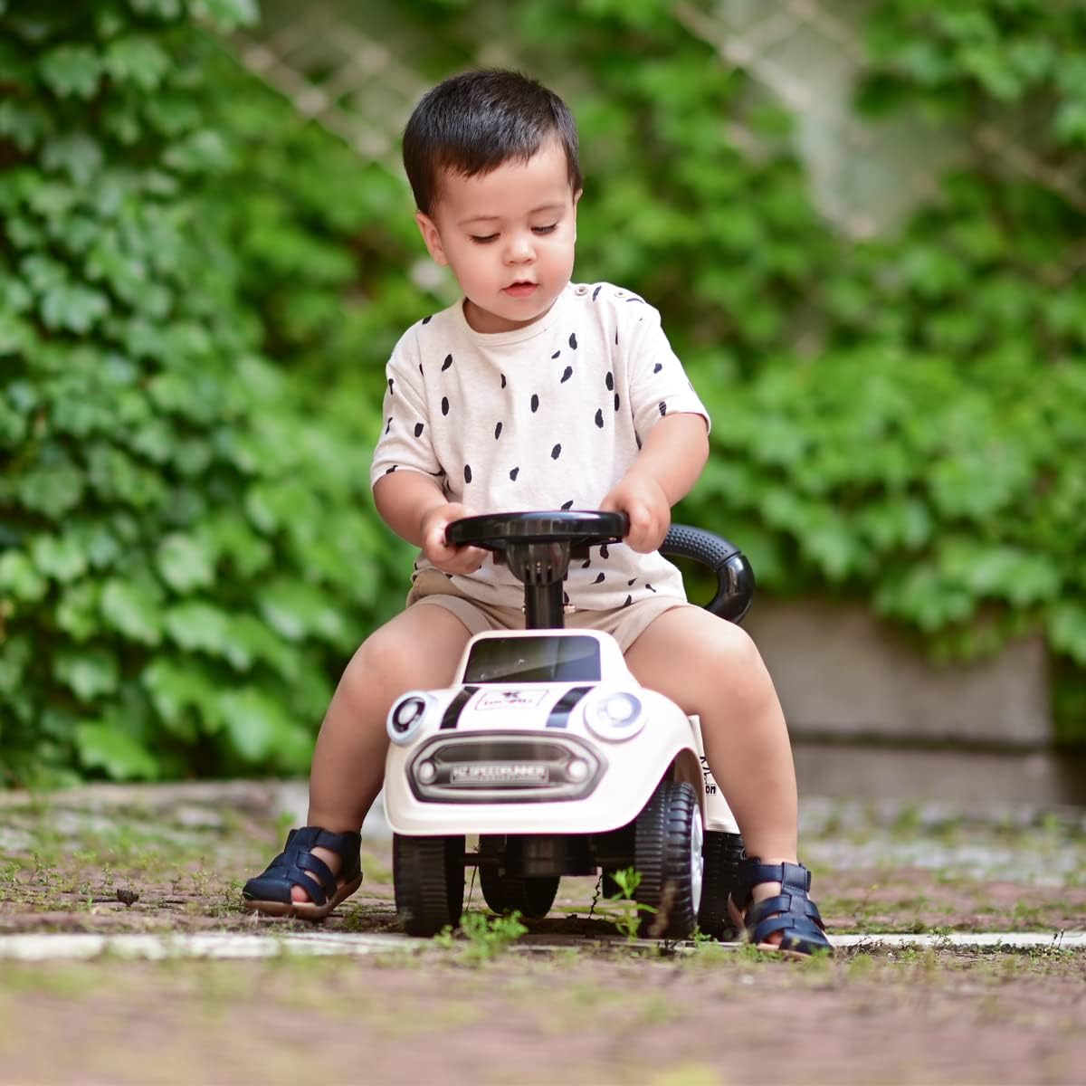 Cavalcabile per bambini in bianco per ragazzi e ragazze a partire da 12 mesi, fino a un massimo di 20 kg, adatto per interni ed esterni, pannello musicale con segnale acustico e musica sul volante, schienale con funzione aggiuntiva come ausilio per la deambulazione per la spinta, sedile comodo, protezione per le punte, prodotto secondo la norma UE EN-71