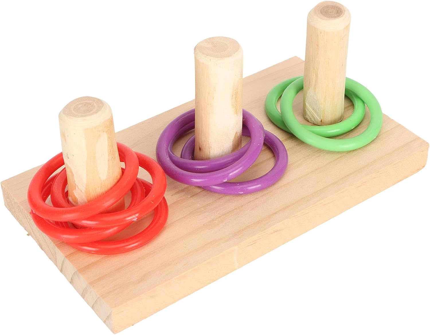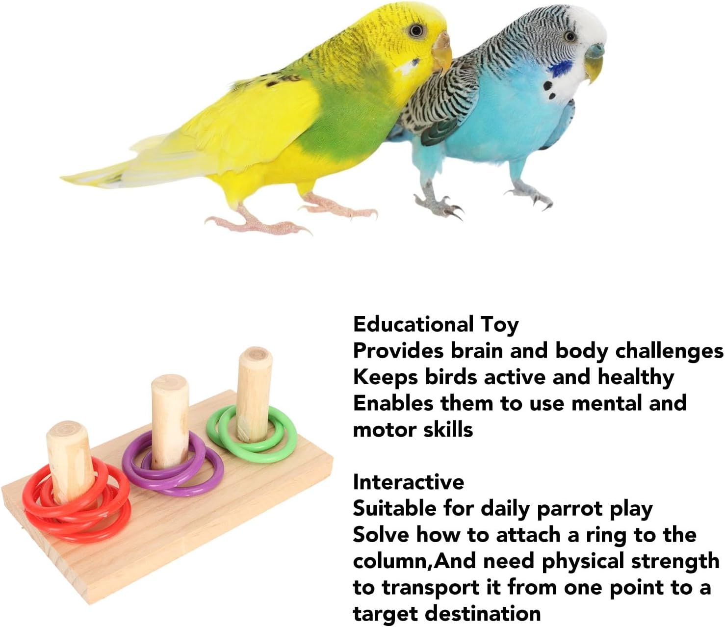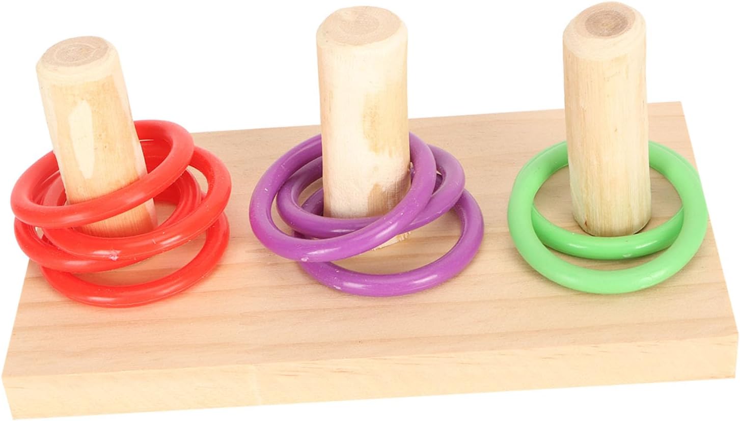 INTERATTIVO: Adatto al gioco quotidiano del pappagallo quando cerca di agganciare l'anello al pilastro e richiede forza fisica per trasportarlo da un punto alla destinazione. ATTRAENTE: gli uccelli rispondono sempre ai colori vivaci, gli anelli sono dai colori vivaci e possono facilmente attirare l'attenzione degli uccelli. Li tiene occupati e lontani da attività distruttive. Allevia la noia: i giocattoli da tavolo ad anello per uccelli possono aiutare gli uccelli a liberarsi della noia e aiutarli a rimanere fisicamente e mentalmente sani. Adatto per l'allenamento quotidiano e l'apprendimento di nuove abilità. GIOCATTOLO PUZZLE: il colorato anello per uccelli offre sfide al cervello e al corpo che mantengono gli uccelli attivi e in salute e consentono loro di usare le loro capacità intellettuali e motorie. MATERIALI SICURI: Anello giocattolo per uccelli, la base e il pilastro sono realizzati in materiale di legno, l'anello è realizzato in plastica colorata, sicuro e non tossico, l'uccello può masticarlo liberamente.
