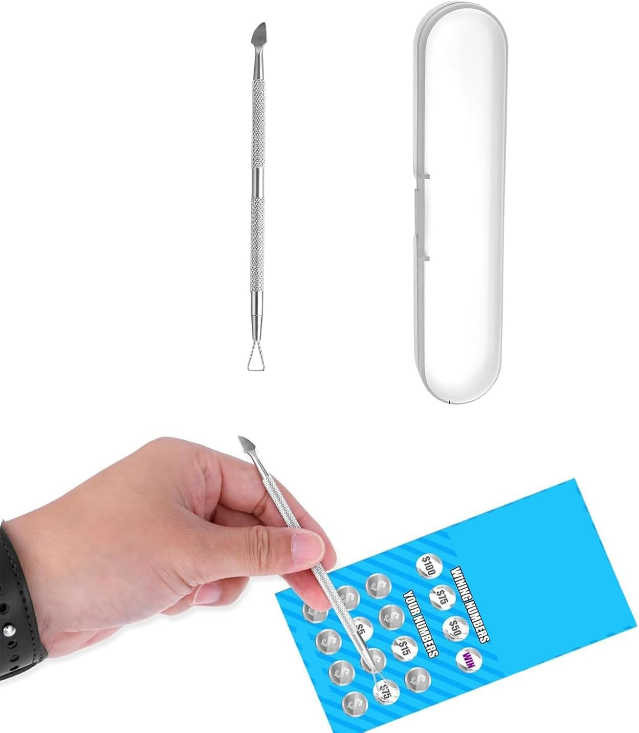 Strumento per grattare biglietti della lotteria, disegni per fornire un'azione fluida e controllata, assicurando che i biglietti della lotteria non siano danneggiati quando Comodo da trasportare, uno strumento pratico che ben in tasca Un ottimo sostituto per aver bisogno di una moneta, anche molto meglio che usare una moneta Questo strumento rimuove i rivestimenti dei biglietti della lotteria, rapidamente e migliora la tua efficienza Il tiragraffi in metallo è facile da pulire e mantenere, ed è progettato per fornire un'azione fluida e controllata, assicurando che i biglietti della lotteria siano graffiati senza danneggiarli