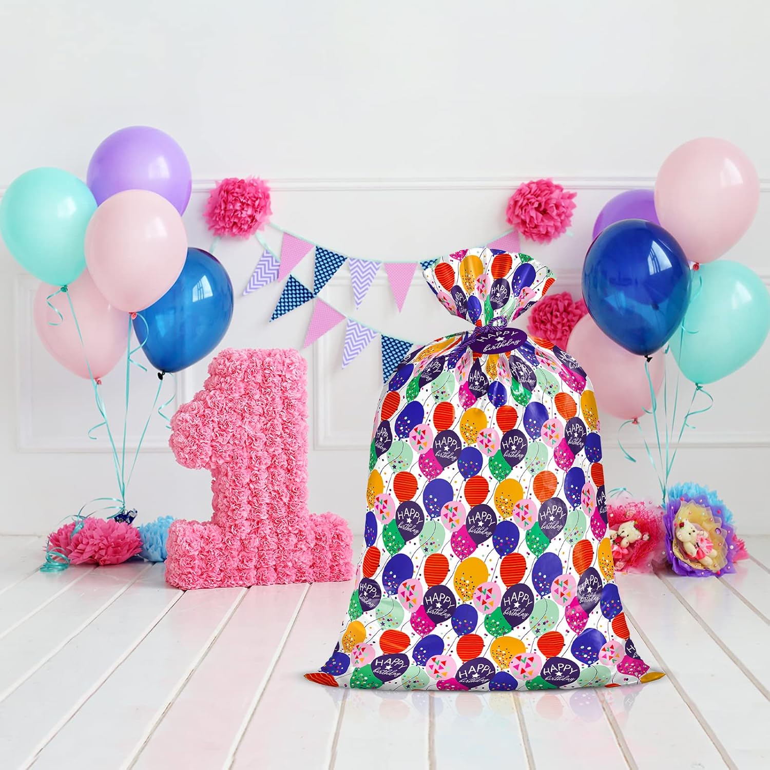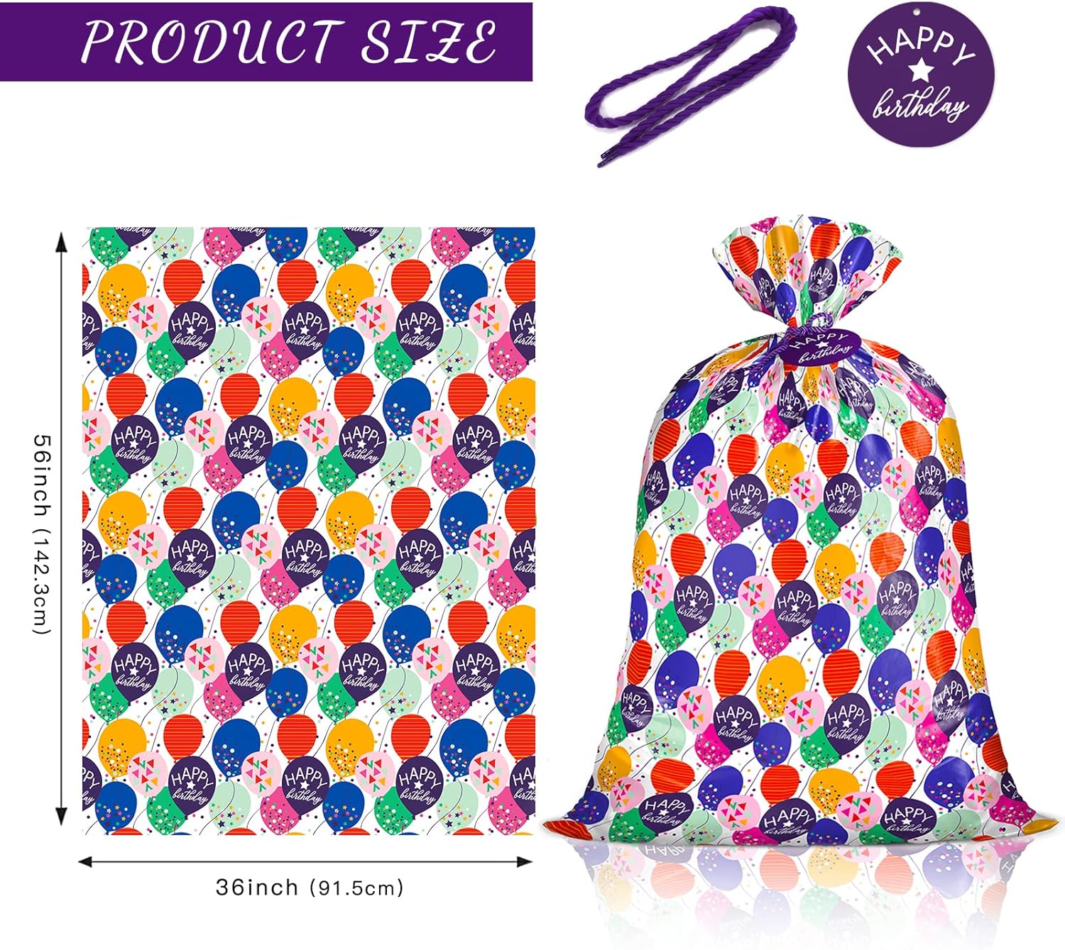 Dimensioni: il grande sacchetto regalo in plastica misura 36 pollici di larghezza x 56 pollici di altezza, per un totale di 1 sacchetto, 1 etichetta e 1 cravatta. Design di compleanno: palloncino colorato con stampa di coriandoli, perfetto per confezionare regali di compleanno per bambini. Alta qualità: sacchetto di plastica ben fatto e resistente. Non solo spesso, ma anche robusto e assolutamente non vedrai attraverso. Imballaggio leggero: la borsa viene consegnata piegata in una confezione piatta. Non occupa spazio, facile da riporre ordinatamente quando non in uso. Perfetto per regali di forma gigante o grossa che sono troppo difficili da avvolgere nella carta da regalo. È decisamente più carino di un semplice pacchetto di spazzatura e ti piacerà.