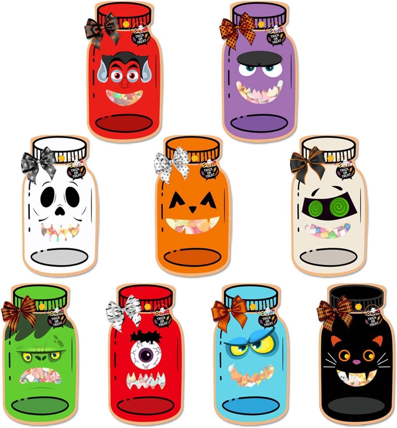 【Qualità Premium】: Realizzati in carta di qualità. Questi sacchetti regalo di Halloween per bambini sono resistenti agli strappi e adatti a contenere caramelle, piccoli giocattoli o altri dolcetti speciali. 【Bomboniere di Halloween che si distinguono】: Se cercate dolcetti di Halloween creativi e divertenti che si distinguano dagli altri, questi biglietti e sacchetti di carta sono un must. Ottimi come bomboniere per le feste di Halloween dei bambini, per lo scambio di regali in classe, per eventi scolastici di Halloween, per per insegnanti e per altri eventi festivi. 【Sacchetti per caramelle e biglietti di Halloween】: Il nostro set di sacchetti per dolcetti di Halloween include: 9 biglietti di carta di Halloween, 9 sacchetti per caramelle (caramelle non incluse), 1 foglio (9 pezzi) di nastri adesivi. Ideale per sacchetti regalo di Halloween o bomboniere. 【Regali creativi di Halloween deliziosamente divertenti】: Questi adorabili biglietti di auguri in barattolo di vetro misurano circa 15x11 cm / 5,9x4,33 pollici, abbinati a sacchetti portaoggetti (12x8 cm / 4,72x3,15 pollici) per contenere caramelle, cioccolatini, biscotti, , o altri piccoli regali. Basta attaccarli sul retro dei biglietti con del nastro adesivo! Carini e facili da assemblare. 【Per 】: Questi sacchetti regalo con carte regalo presentano una deliziosa varietà di personaggi come zucche e fantasmi, un'aggiunta fantastica alle vostre feste di Halloween. Adatti per feste di o come bomboniere.