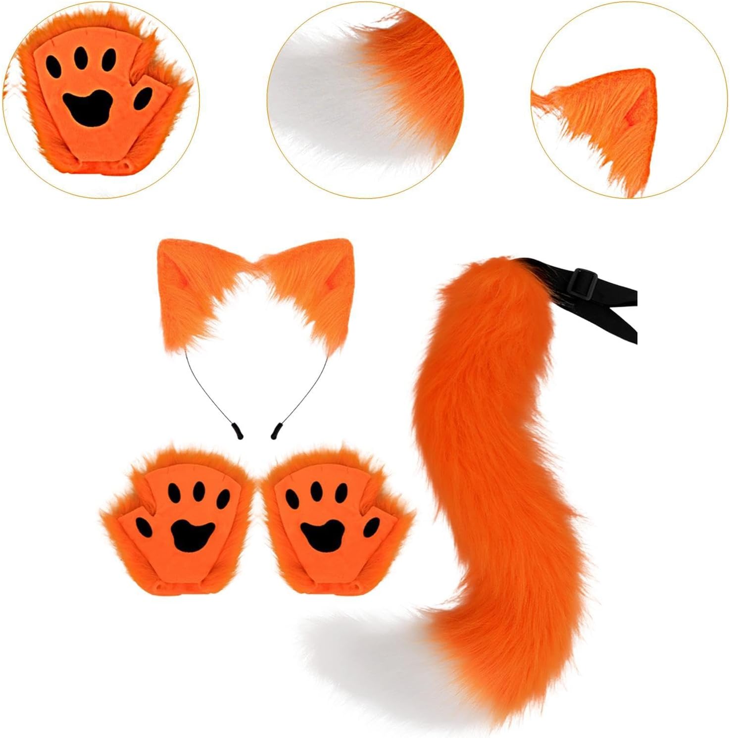 【La confezione include】: ogni confezione include 1 fascia per orecchie, 1 coda e 1 paio di guanti per zampe, tutto il necessario per completare il tuo look 【Dimensioni del prodotto】: la fascia misura 17 cm x 16 cm/6,69 pollici x 6,30 pollici, i guanti misurano 20 cm x 20 cm/7,87 pollici x 7,87 pollici e la coda misura 50 cm/19,69 pollici, il che li rende di grandi dimensioni sia per adulti che per bambini 【Facile da indossare】: la coda con fibbia per cintura si adatta a qualsiasi vestito e vita e la fascia si adatta alla maggior parte delle acconciature diverse 【Materiale】: Realizzato in materiale poliestere, questo set di orecchie e coda presenta dettagli delicati, tocco confortevole, durevole nell'uso 【Ampia applicazione】: adatto per feste a tema, feste in maschera, cosplay, feste in maschera, Halloween e altro ancora