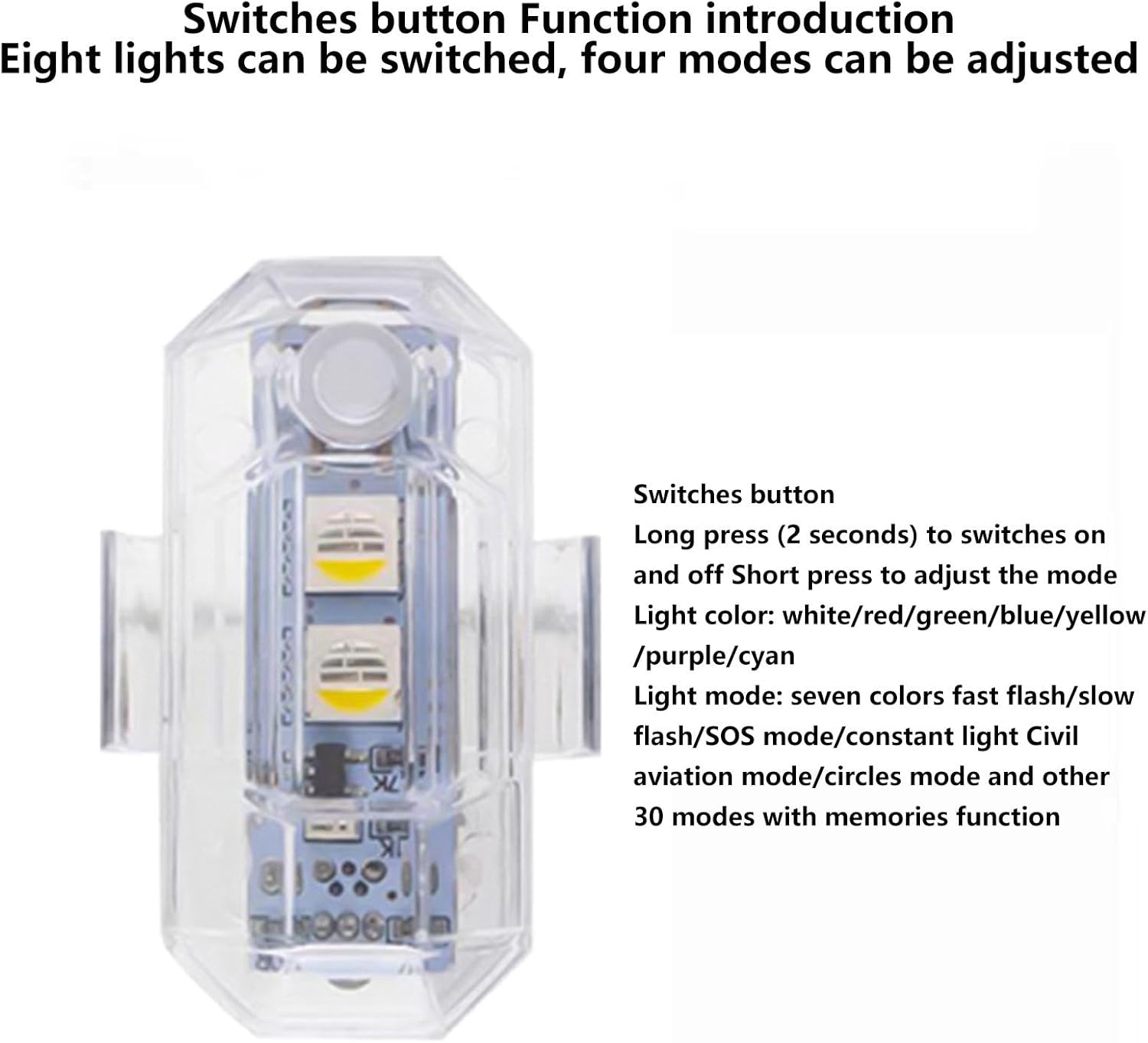 Soluzione di controllo remoto: dotate di un design di controllo remoto, le nostre luci lampeggianti wireless consentono un facile passaggio tra le modalità di illuminazione a distanza, migliorando perfettamente l'operabilità e la comodità 'utente Decorazione lampeggiante piena di divertimento: le luci a LED offrono più colori e modalità lampeggianti, fornendo un effetto lampeggiante multicolore, che aumenta anche il divertimento a decorazione Sicurezza migliorata: adottando un design ad alta luminosità, queste luci lampeggianti wireless garantiscono la massima visibilità sulla strada. La loro funzione di avviso aggiunge un ulteriore livello di precauzione, rendendoli adatti a una varietà di scenari di avviso Visibilità notturna migliorata: massimizza la sicurezza durante la guida notturna con le nostre luci lampeggianti wireless che garantiscono un'elevata visibilità dei veicoli, segnali di avvertimento chiari e una migliore visibilità notturna Design impermeabile: le nostre luci lampeggianti wireless vantano un design impermeabile avanzato che garantisce un uso prolungato in caso di pioggia e neve. Questa perfetta impermeabilità prolunga la durata del prodotto, garantendo prestazioni affidabili