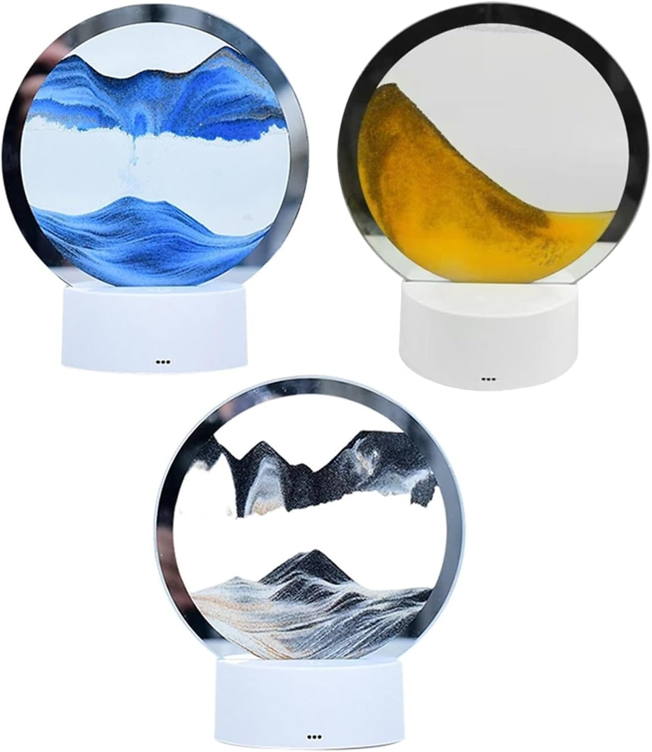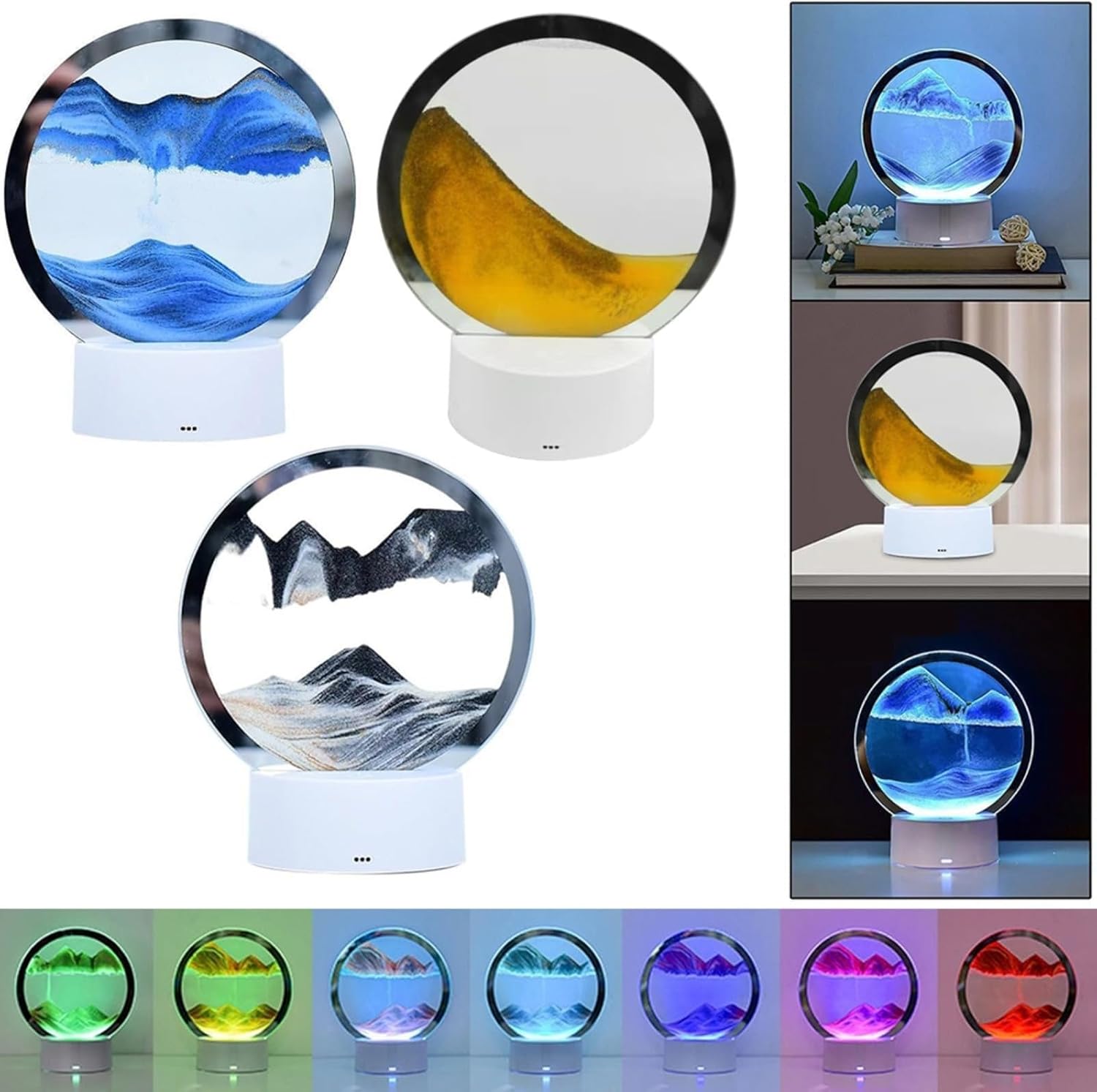 -【3D Dynamic Sand Painting】: questa luce notturna presenta un accattivante dipinto a sabbia fluente 3D, creando un'esperienza visiva bella e affascinante. Il design semplice aggiunge un tocco elegante e generoso a qualsiasi spazio. - 【Stile creativo】: le delicate sabbie mobili in diverse proporzioni e strati distinti formano una visione unica e ordinata. Goditi gli affascinanti alti e bassi creati dalla sabbia in movimento, aggiungendo un senso di tranquillità e arte all'ambiente circostante. - 【Alimentazione a 2 vie】: è possibile alimentare questa lampada tramite il cavo USB o con batterie (batterie non incluse), offrendo flessibilità nelle opzioni di illuminazione. Sia che tu preferisca un apparecchio permanente o un'opzione portatile, questa lampada ti ha coperto. - 【3 display di illuminazione】: con un pulsante di interruttore touch, è possibile scegliere tra tre display di illuminazione. Goditi la modalità di cambio colorato lento, la modalità di cambio rapido colorato o la modalità fissa a colore singolo per creare l'atmosfera perfetta per ogni occasione. - 【Grande decorazione】: questa luce notturna non è solo una soluzione di illuminazione funzionale, ma anche una grande decorazione per vari spazi. Che si tratti di soggiorno, camera da letto, caffè, bar o ristorante, questo bellissimo ornamento da tavolo migliorerà senza sforzo l'atmosfera.