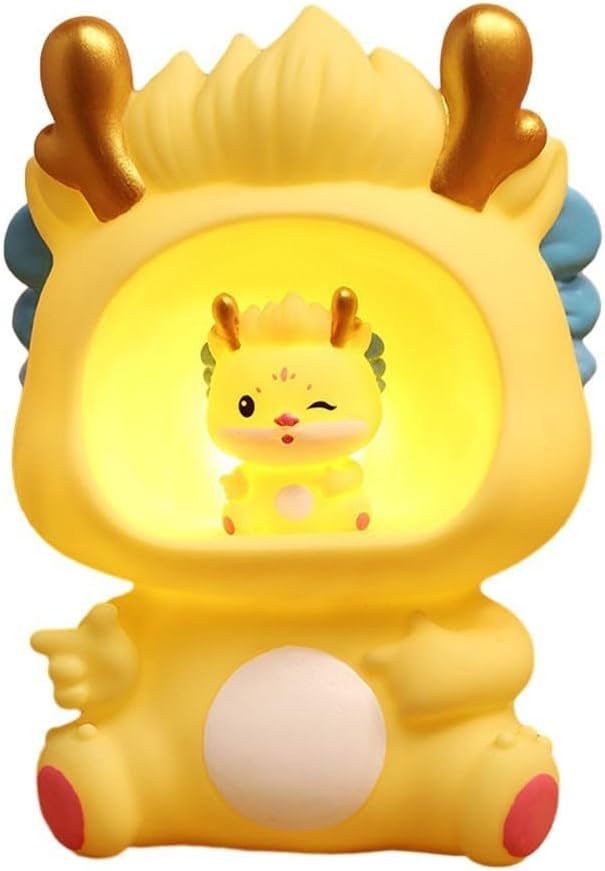 Simpatico salvadanaio a forma di drago in stile cartone animato: questo adorabile salvadanaio è progettato in un simpatico stile cartone animato con drago, aggiungendo un tocco festivo e di buon auspicio alle celebrazioni del capodanno cinese. Può anche fungere da affascinante decorazione per i comodini dei bambini. Materiale ecologico: realizzato in resina, questo salvadanaio è sicuro e adatto ai bambini. La sua costruzione robusta garantisce durata per un uso a lungo termine. Luce notturna multifunzionale: oltre ad essere un salvadanaio, funge anche da luce notturna. La luce morbida e calda crea un'atmosfera rilassante nella stanza dei bambini, favorendo un ambiente tranquillo per dormire. Dimensioni perfette: misura 14 x 5 cm, questo salvadanaio è compatto e leggero, consentendo un facile posizionamento su un comodino o una mensola. Le sue piccole dimensioni sono perfette per i bambini da gestire e giocare. Incoraggia il risparmio: questo salvadanaio non solo intrattiene, ma educa. Fornisce un modo divertente e interattivo per i bambini per imparare l'importanza di risparmiare denaro, promuovendo buone abitudini di risparmio e responsabilità finanziaria.